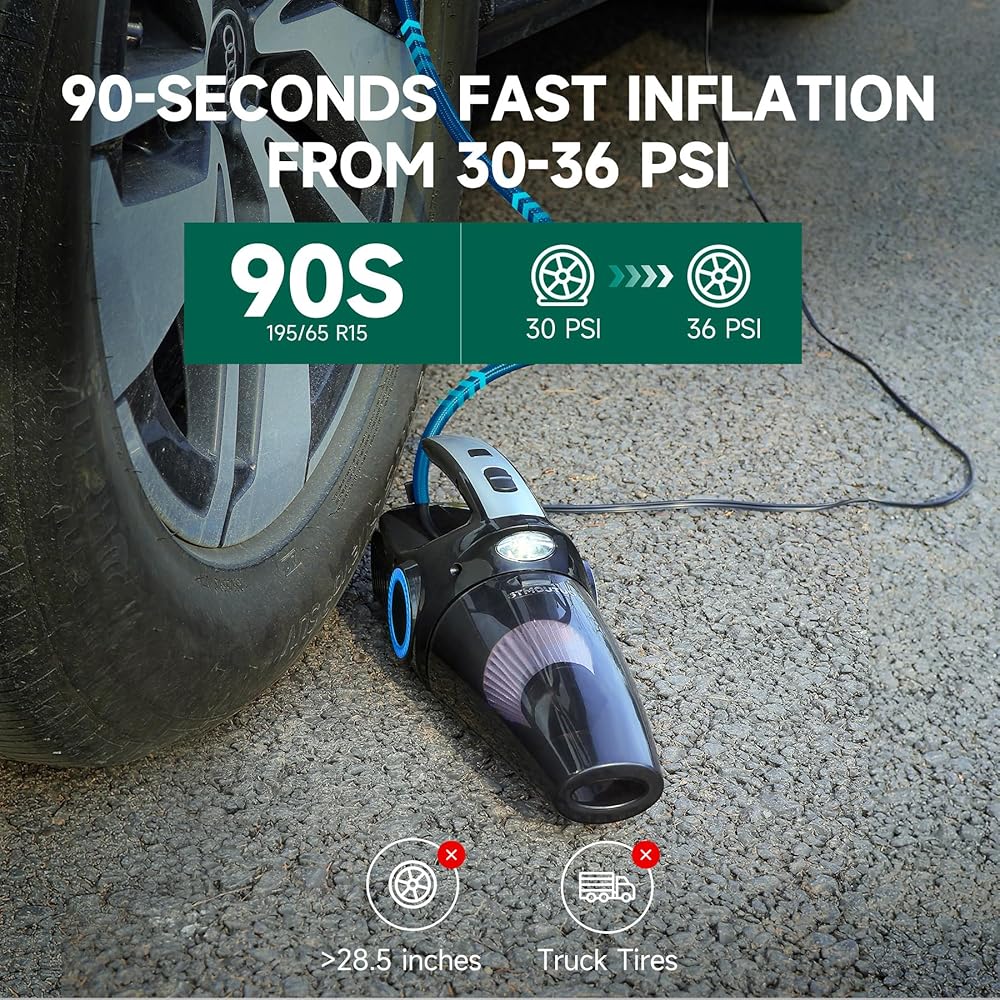 • ** 𝐒𝐓𝐑𝐎𝐍𝐆 𝐏𝐎𝐖𝐄𝐑 & 𝐅𝐀𝐒𝐓 𝐈𝐍𝐅𝐋𝐀𝐓𝐈𝐎𝐍** - تستخدم مضخة ضاغط الهواء لدينا نظام شحن توربيني فريد، مما يوفر المزيد من الطاقة مع ضوضاء أقل. يقوم بنفخ إطار السيارة مقاس 195/65 R15 من 30 إلى 36 رطل لكل بوصة مربعة خلال 90 ثانية فقط. ملحوظة: تم تصميم منفاخ الإطارات هذا لإطارات السيارات القياسية وهو غير مناسب للمركبات الترفيهية أو الشاحنات الصغيرة أو المركبات الكبيرة الأخرى ذات الإطارات عالية الضغط.