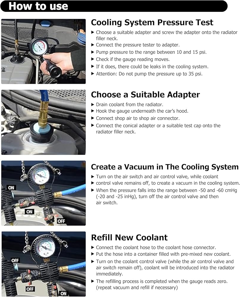 - يسمح باختبار سهل للتسرب في نظام الرادياتير والتغيير السريع لسائل التبريد