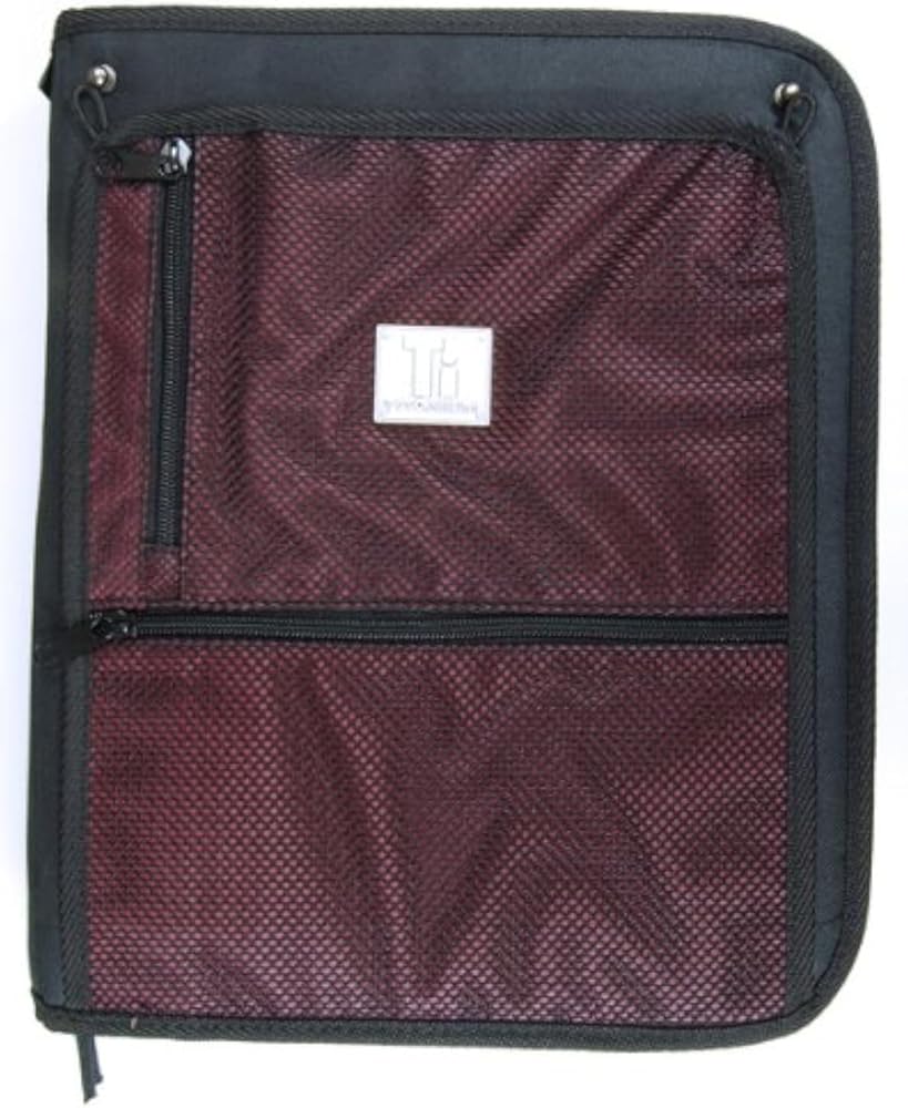 حافظة بسحاب من التيتانيوم من توب فلايت مع حلقات على شكل حرف D مائلة مقاس 1.5 بوصة، وحقيبة قابلة للطي، وحامل أقراص مضغوطة وجيب داخلي للملفات، مقاس 13.5 × 11 بوصة، حافظة واحدة، أسود/أحمر (4511491)