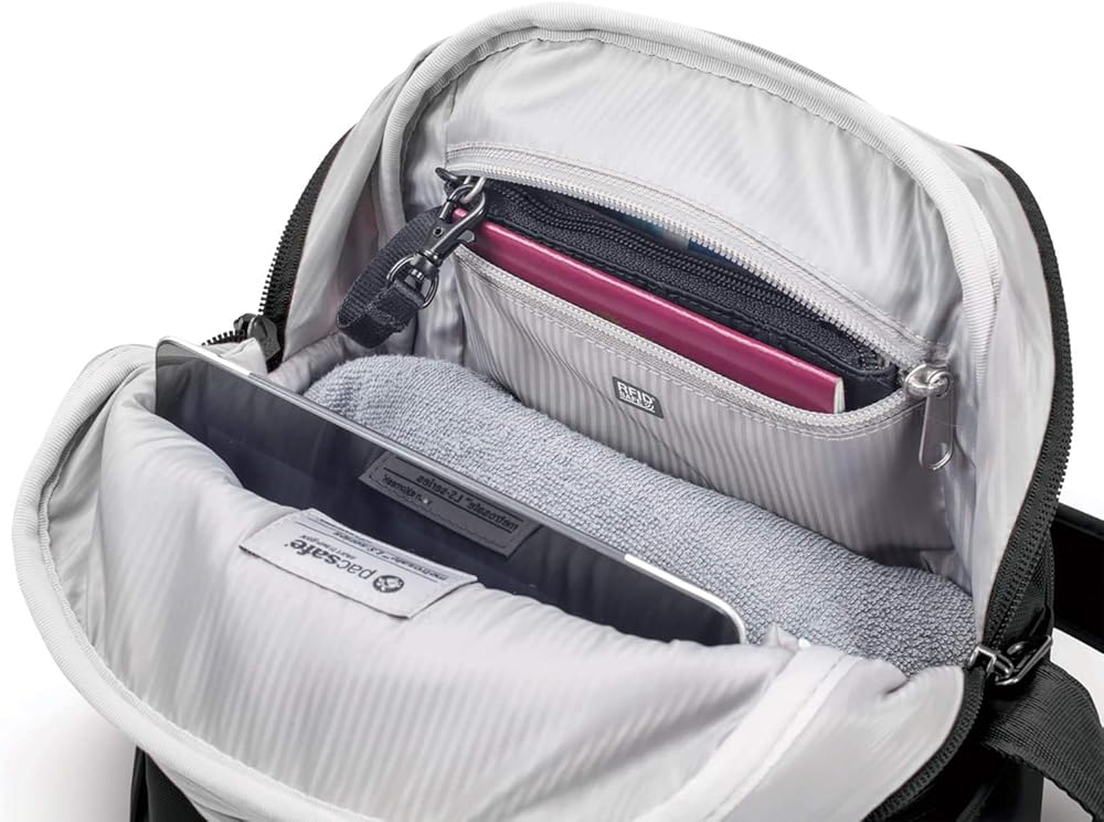 - تساعد مادة حجب RFIDsafe المدمجة في الجيب في القسم الرئيسي على حماية بطاقات الهوية وبطاقات الائتمان من المسح الضوئي للمتسللين