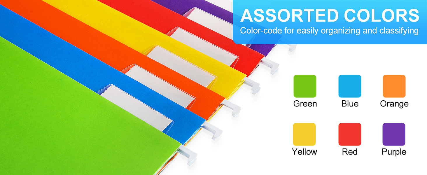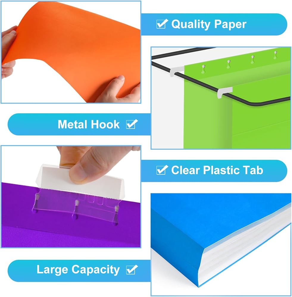 مواد فاخرة ومتانة: مصنوعة من مواد ورقية ممتازة وغير سامة وآمنة ومتينة، للاستخدام اليومي، وتضمن أداءً طويل الأمد. تساعدك المواد القابلة لإعادة الاستخدام على توفير الموارد وتجنب الهدر. تعمل قضبان الخطاف فائقة القوة على إبقاء المجلدات المعلقة تنزلق على القضبان بحيث تظل المجلدات على المسار الصحيح، وتنزلق بسهولة، ولا تنزلق. توفر الحافة العلوية والطية السفلية المعززة متانة إضافية.