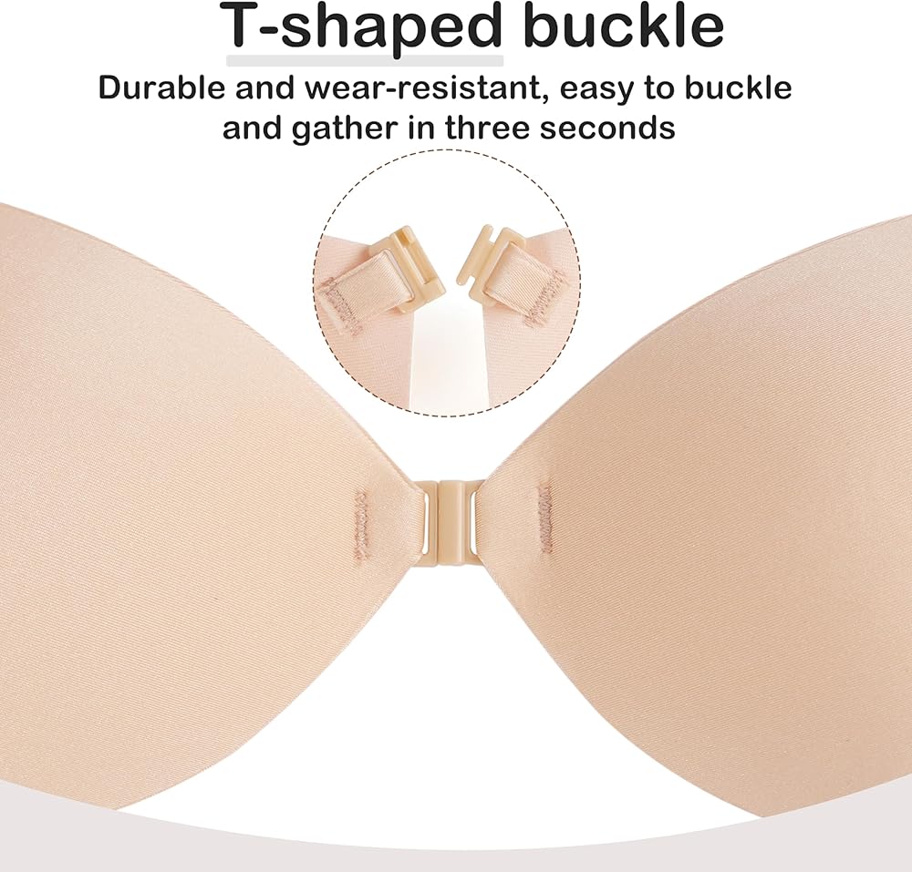With a buckle design and superior adhesive, the sticky bra for large breasts ensures reliable stability. The buckle effectively gathers and lifts the breasts, while the strong adhesive keeps them in place without slipping