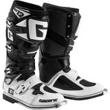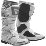 Dual Stage Pivot System is patented and exclusive to Gaerne First pivot attaches to the Razorback to provide a strong lateral support A glide plate keeps the upper in a firm and upright position Second pivot is fixed on a sliding glide that provides a natural feel on the peg Absorbs the shock from over jumps or unwanted compression Buckle system utilizes four lightweight alloy buckles that attach to an adjustable strap System provides the rider with an easy in and easy out, non-failure system Interior lining features Gaerne Memory Cell Foam, known for the most comfortable feel and fit ride after ride Rubber grip guard provides exceptional grip as well as heat resistant padding Grip guard is improved for abrasion resistance Front Plate/Shin Guard is shaped for a perfect fit Thermoplastic shin plate can accommodate a bigger leg or knee brace by removing screws Gaiter is made from a Swiss breathable Acronos fabric Gaiter is extremely stretchy but has the perfect shape to keep the sand and debris out Sole uses Gaerne Dual Composite anti-shock rubber Heel cup has been designed to absorb shock in the case of a rear compression Specially ed footbed to correctly support the foot Front of the footbed features construction that allows the foot to vent