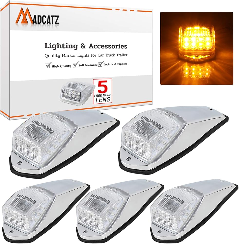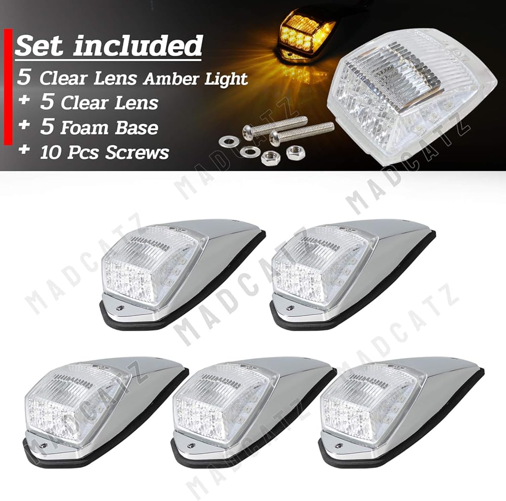 MADCATZ: تتضمن هذه المجموعة 5 قطع من أضواء العدسات المدخنة مع ضوء كهرماني. احصل على 5 قطع إضافية من العدسات المدخنة فقط. تتميز مصابيح السقف العلوي للكابينة هذه بـ 17 مصباح LED بقاعدة من الكروم، مما يجعلها بديلاً ممتازًا للمصابيح المتوهجة. يرجى قياس علامة الكابينة الموجودة لديك قبل الشراء لضمان التوافق مع سيارتك.