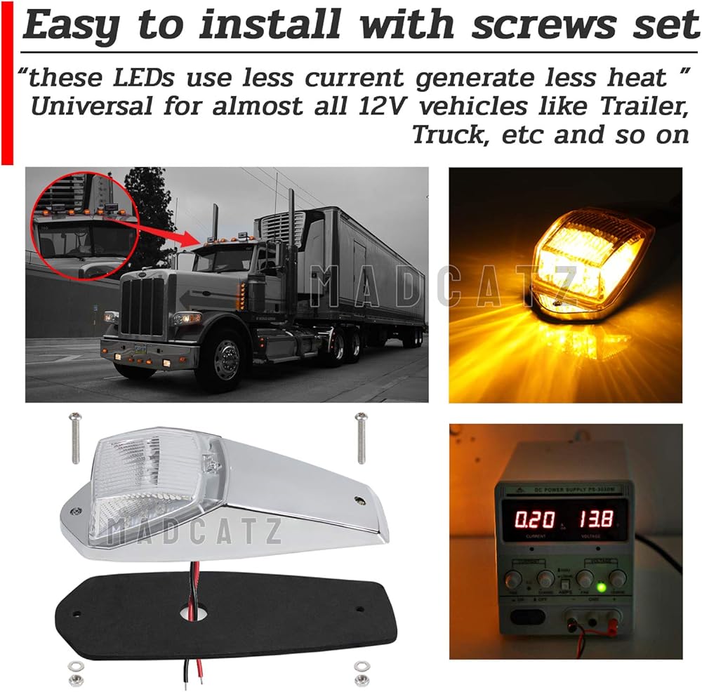 ملاءمة عالمية: مصممة للشاحنات الثقيلة بما في ذلك Peterbilt وFreightliner وInternational وKenworth وMack والمزيد. مناسب أيضًا للاستخدام في الشاحنات الأخرى والمقطورات والجرارات وشبه المقطورات والشاحنات القلابة والمركبات الخاصة.