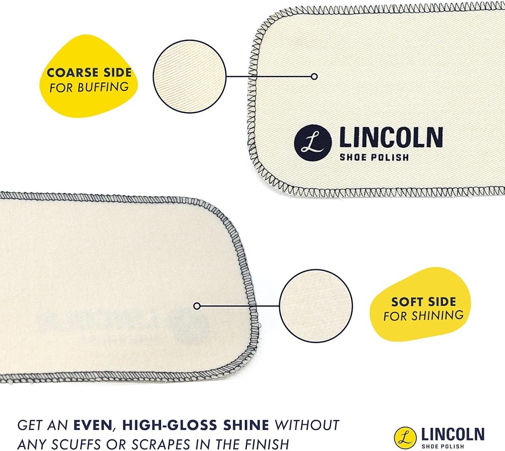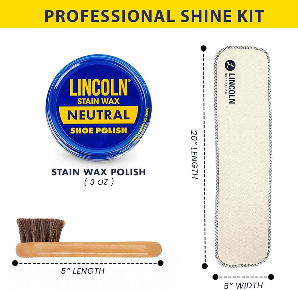 Achieve a Legendary Shine with the Lincoln Shoe Shine Kit Get that military-grade polish right at home with this all-in-one Lincoln Shoe Shine Kit. Trusted by professionals for generations, Lincoln Polish has been providing superior shoe care since 1925. This kit includes everything you need to achieve a flawless, long-lasting shine that repels water. Legendary Lincoln Shine: Made in the USA: Lincoln Polish has been the standard for shoe care for nearly a century. Superior Shine: Formulated with more high-grade carnauba wax than any other brand, Lincoln Polish delivers a brilliant shine that repels water. Complete Shoe Care: This polish not only shines, but also cleans, conditions, protects, and fills in scuffs and scratches, leaving your shoes looking their best. Premium Horsehair Applicator Brush: Ensures smooth, even application of polish for a professional-looking finish. Large Buffing Cloth (5”x20”) Made from soft cotton flannel with stitched edges, this cloth buffs your shoes to a high gloss without scratching. It's also hand washable for easy cleaning. This kit is perfect for: Military personnel Law enforcement officers Firefighters Professionals who need a polished look Anyone who wants to give their shoes the best possible care Invest in your shoes and experience the Lincoln Shine difference. Order your Lincoln Shoe Shine Kit today!