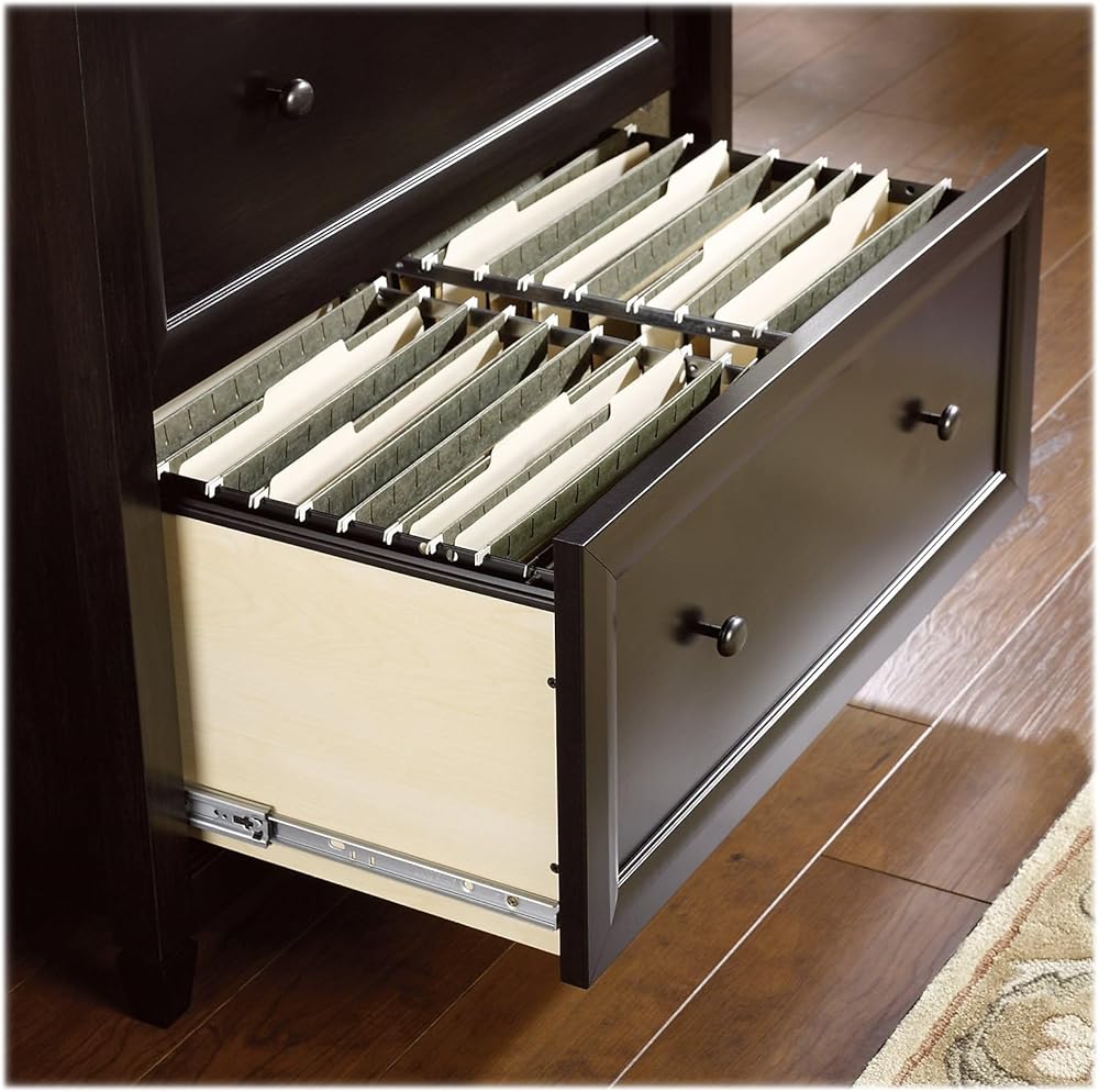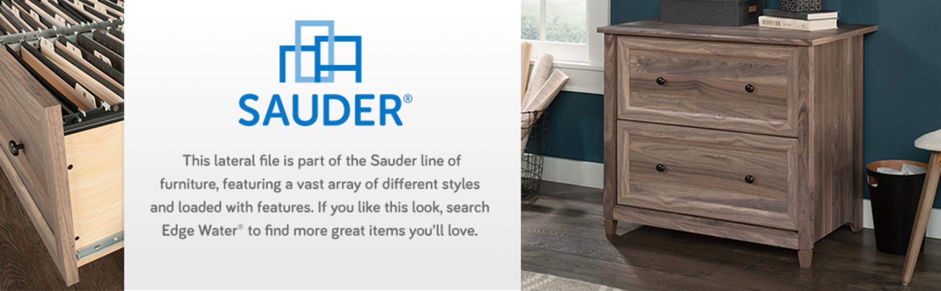 Create the storage options you need while adding the style you want with this 2-drawer lateral file cabinet from the Edge Water® collection. This file cabinet features two large storage drawers with full extension slides that can hold letter or legal-size hanging files so you can keep all your important documents organized and easy to find. This 2-drawer file cabinet features an interlocking safety mechanism that allows only one drawer to open at a time for added safety. The spacious top surface also makes a great place to store and display a variety of different items like an accent lamp, your printer, decorative plants and photos of your family and friends. The elevated looks and simplistic design make this wood lateral file cabinet a perfect addition to any room in your home, whether it's in your office or the family room. Finished in Washed Walnut®, this farmhouse filing cabinet will have you feeling organized in no time.