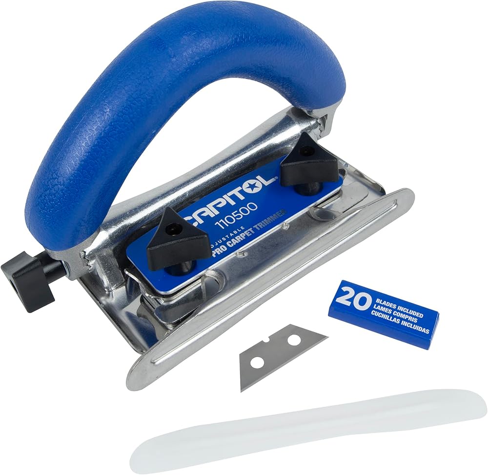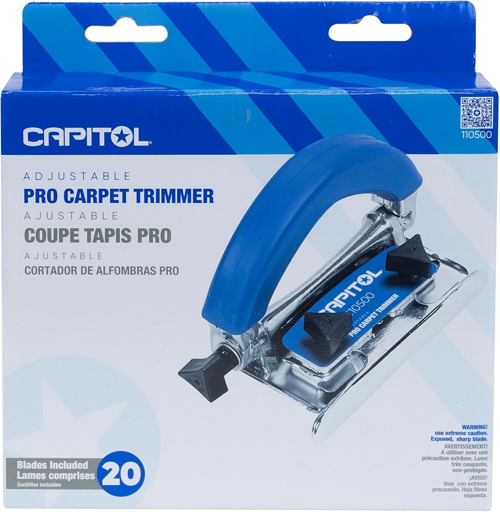 Capitol Adjustable Pro Carpet Trimmer neatly trims carpet at the wall and under toe kicks. The anti-slip, 5-position handle moves easily in tight areas, and can be adjusted for different carpet thicknesses.
