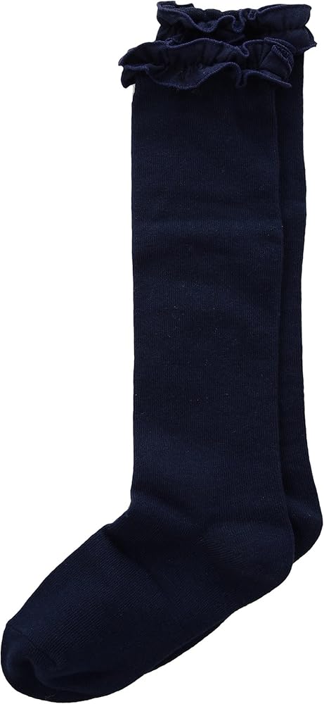 PRACTICAL AND CHIC: Whether you're dressing up for a special occasion or simply want to add a chic element to your everyday attire, the Jefferies toddler girls' knee-high socks are the perfect choice. Their practical design combined with stylish ruffle trim makes them a must-have accessory for any fashion-forward individual.