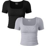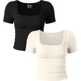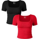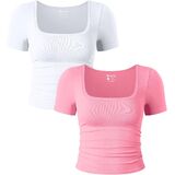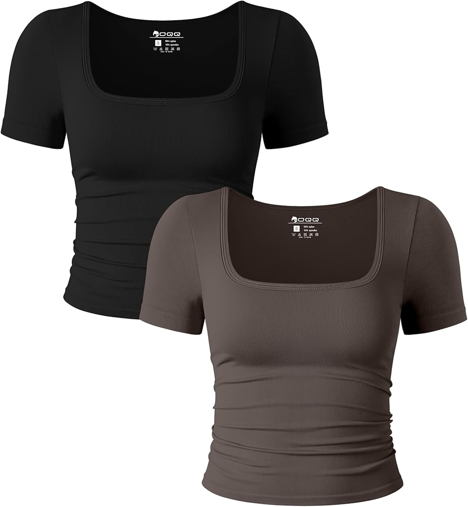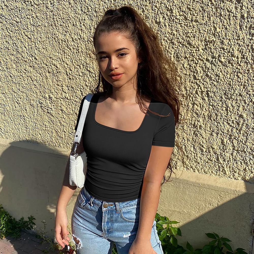 التصميم - قمصان خروج للسيدات. قميص مثير، قمصان علوية بمقاس نحيف، أكمام قصيرة، رقبة مربعة، لون ثابت. هذا القميص هو قطعة يجب اقتناؤها في خزانة الملابس.