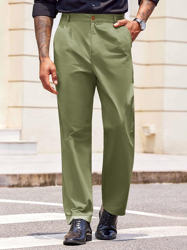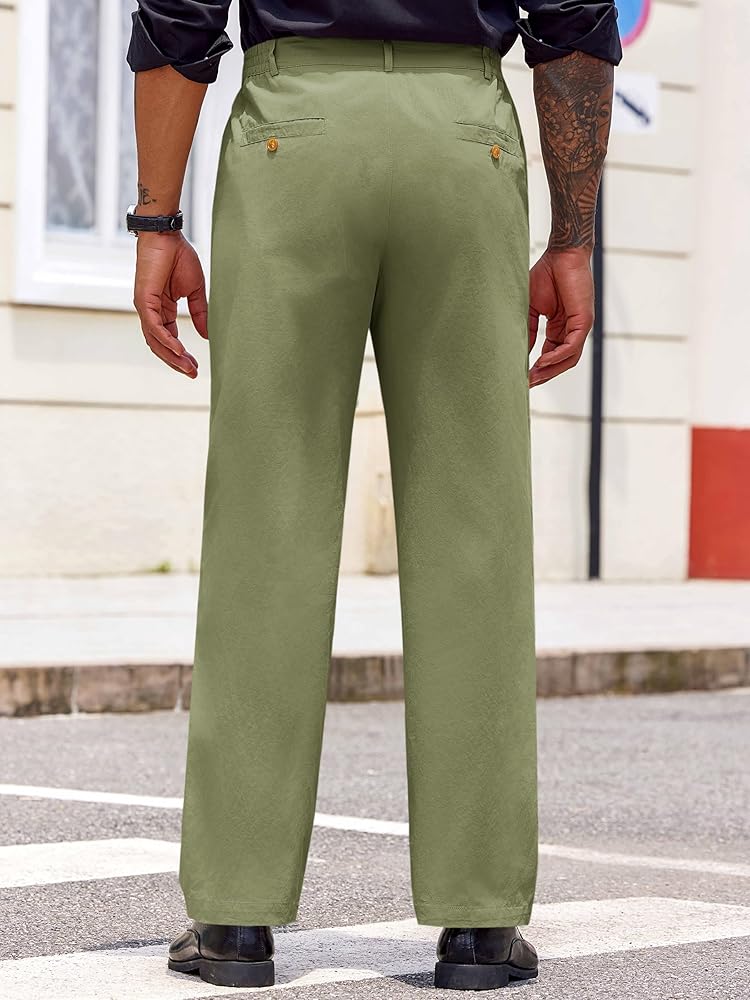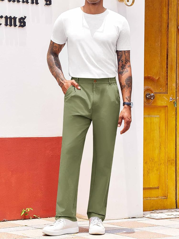 مطابقة: يمكن ارتداء السراويل القطنية ذات المقاس الكلاسيكي للرجال مع القمصان ذات الأزرار السفلية والقمصان والسترات والأحذية القماشية لخلق مظهر يومي كاجوال. يمكن أيضًا أن تتماشى مع قمصان الفساتين والسترات لإظهار الطراز الرسمي والأنيق.