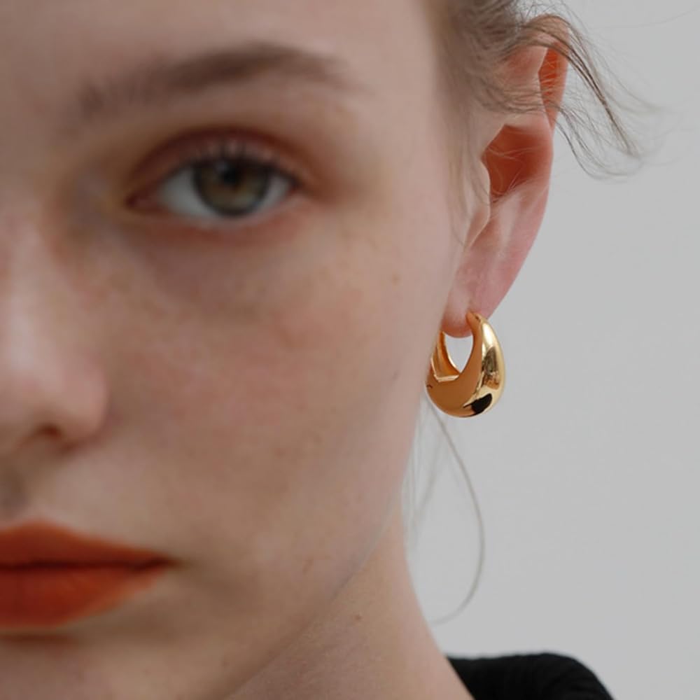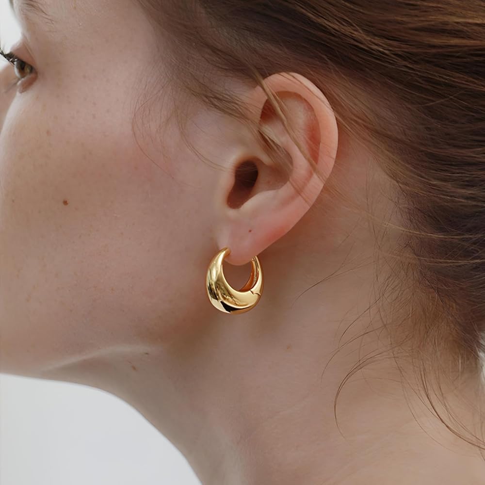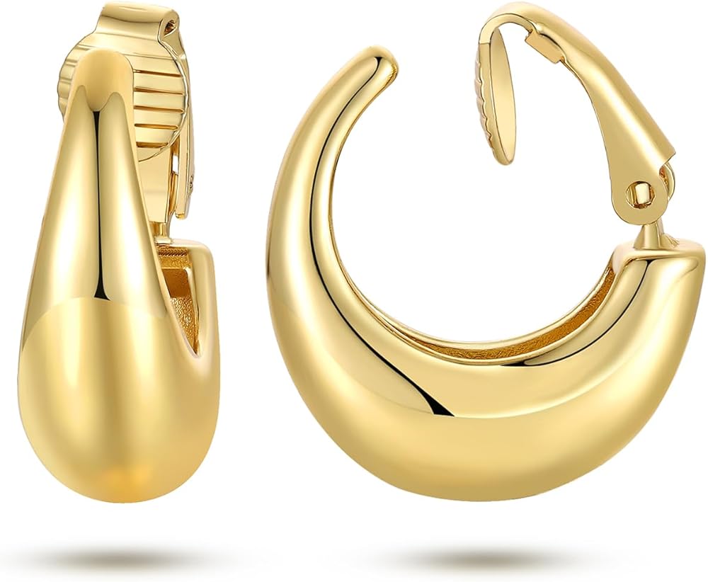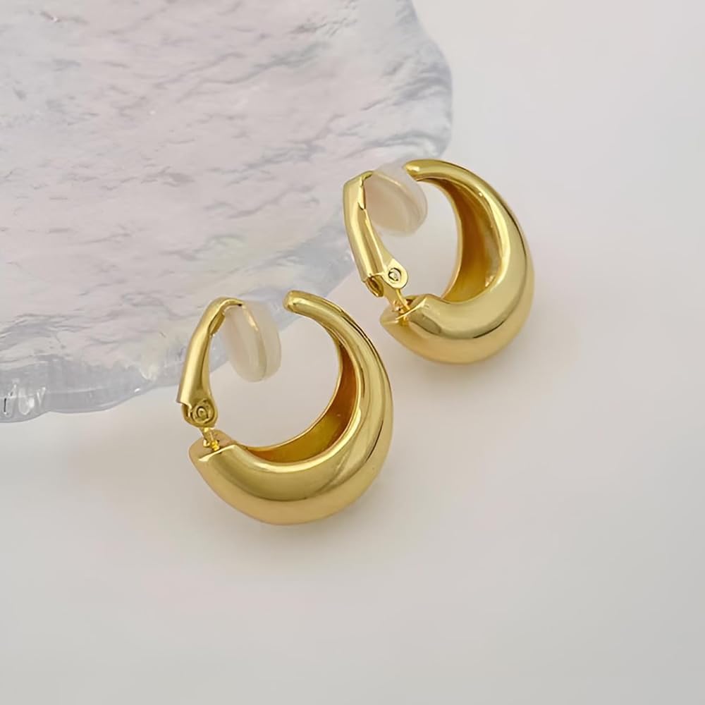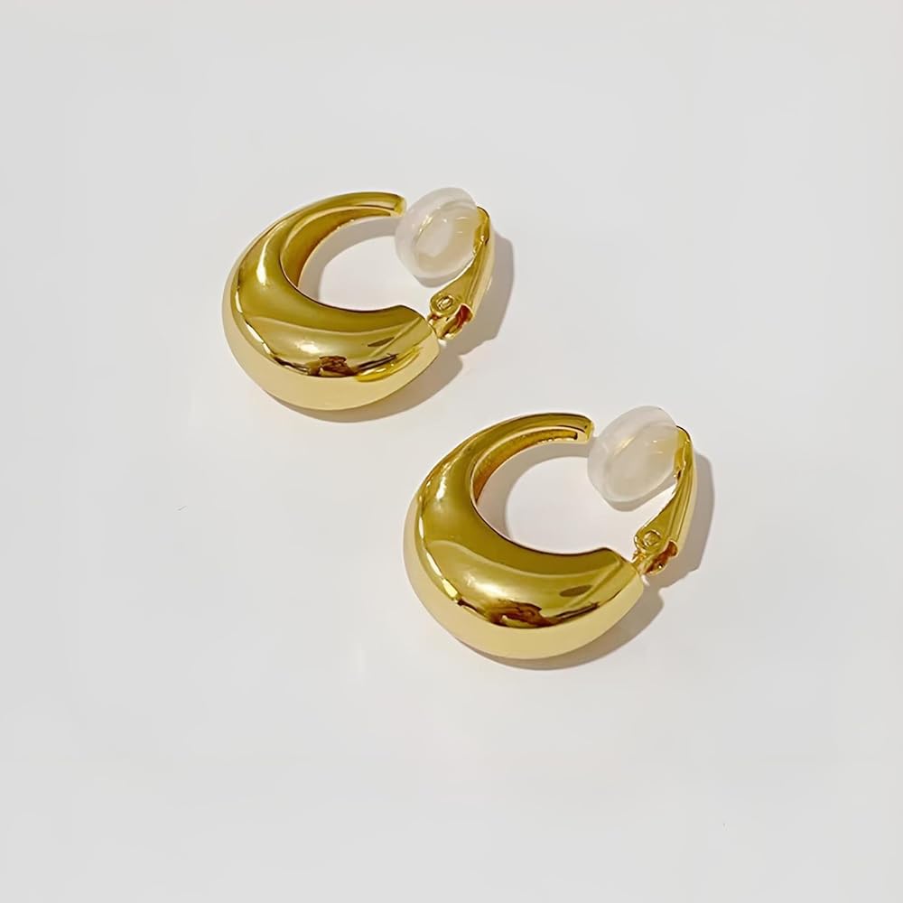 أقراط مشبكية على شكل أنبوب: هذه الأقراط ذات اللون الذهبي مع تصميم حلقات مفتوحة مكتنزة وخفيفة الوزن. مشبك خلفي للأذنين غير المثقوبة