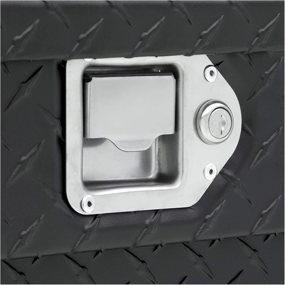 EXTRA-THICK ALUMINUM. UWS aluminum truck tool boxes are constructed with thicker aluminum compared to most aluminum tool boxes to provide superior strength. This matte black truck tool box features a one-piece tub made from welded 0. 058-inch aluminum. The tub has a deep, angled profile to maximize cargo space without obstructing the wheel wells.