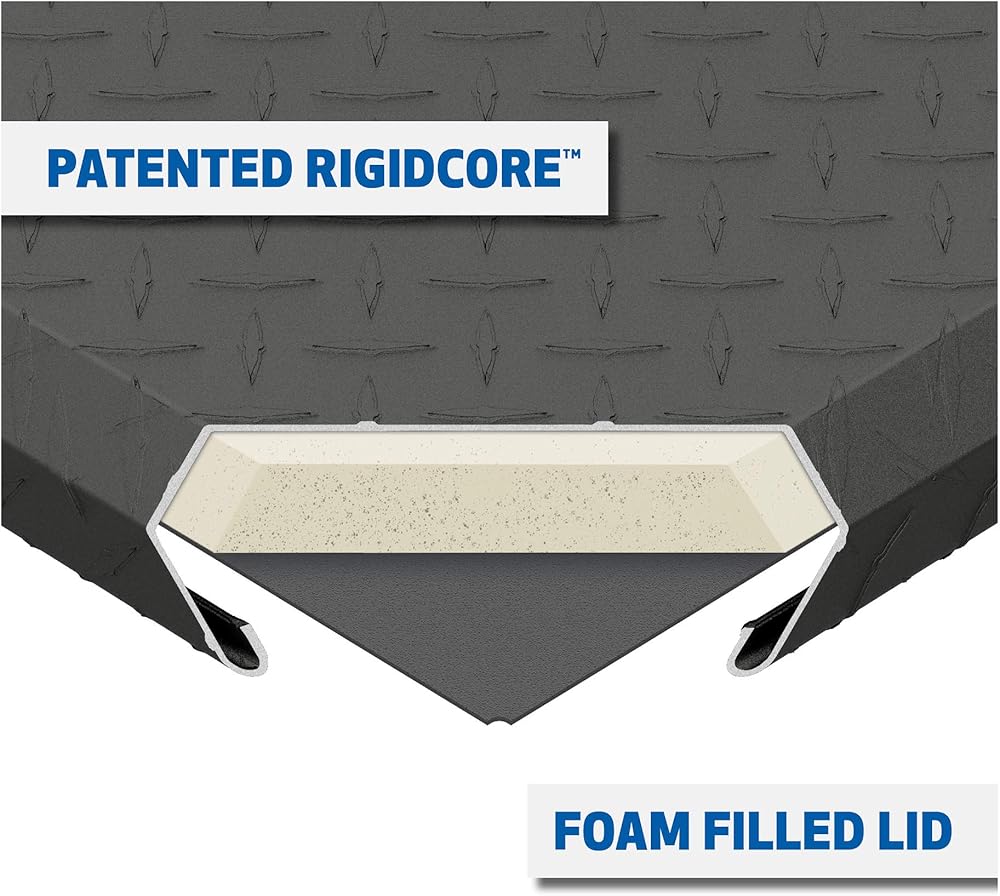 RIGIDCORE LID. This truck bed tool box is built for maximum lid strength and security with patented RigidCore technology. The lid is filled with a solid foam that maximizes structural integrity and helps prevent binding.