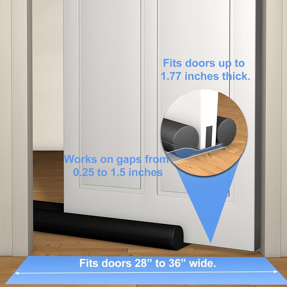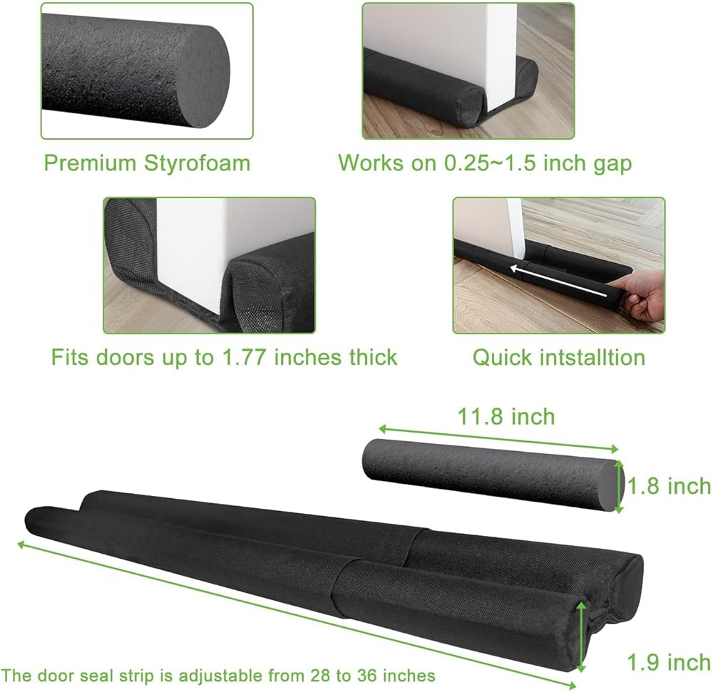 2 عبوة سدادة الباب الكبيرة لأسفل الأبواب 36 بوصة مسح الباب تجريد حاصرات الضوضاء تحت الباب ضوضاء سدادات سوداء سوداء قابلة للضبط