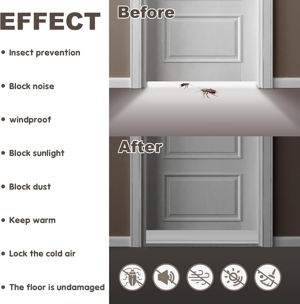 تصميم متين: تتميز سدادات السيليكون أسفل الباب بمرونة ومتانة جيدة، وليس من السهل أن تتلف. يبلغ مقاسها 5.08 سم عرضًا × 99.56 سم طولاً، ويناسب معظم أحجام الأبواب القياسية