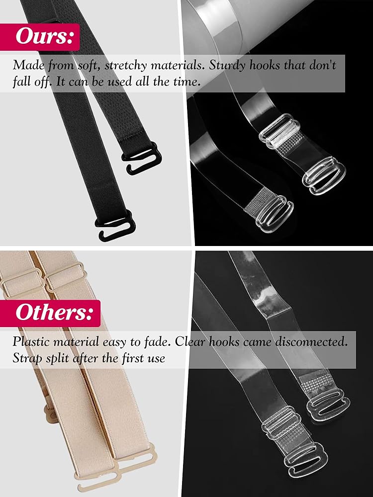 【قابل للتعديل ومتعدد الاستخدامات وغير مرئي】مع طول قابل للتعديل بالكامل، يمكن ارتداء أحزمة حمالة الصدر البديلة لدينا بطرق مختلفة، بما في ذلك الأنماط العادية والرسن والظهر المتقاطع. حزام حمالة الصدر الشفاف يمتزج جيدًا مع لون بشرتك دون التأثير على مظهرك العام.