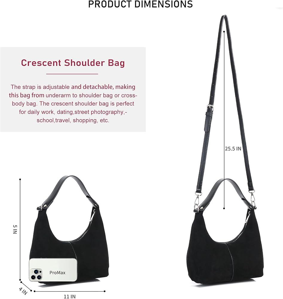 【Perfect Size as Everyday Bag】This crescent hobo bag is small but spacious. It provides capacious interior to easily accommodate daily necessities such as phone, wallet, sunglasses, keys and cosmetics.