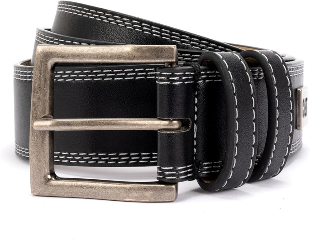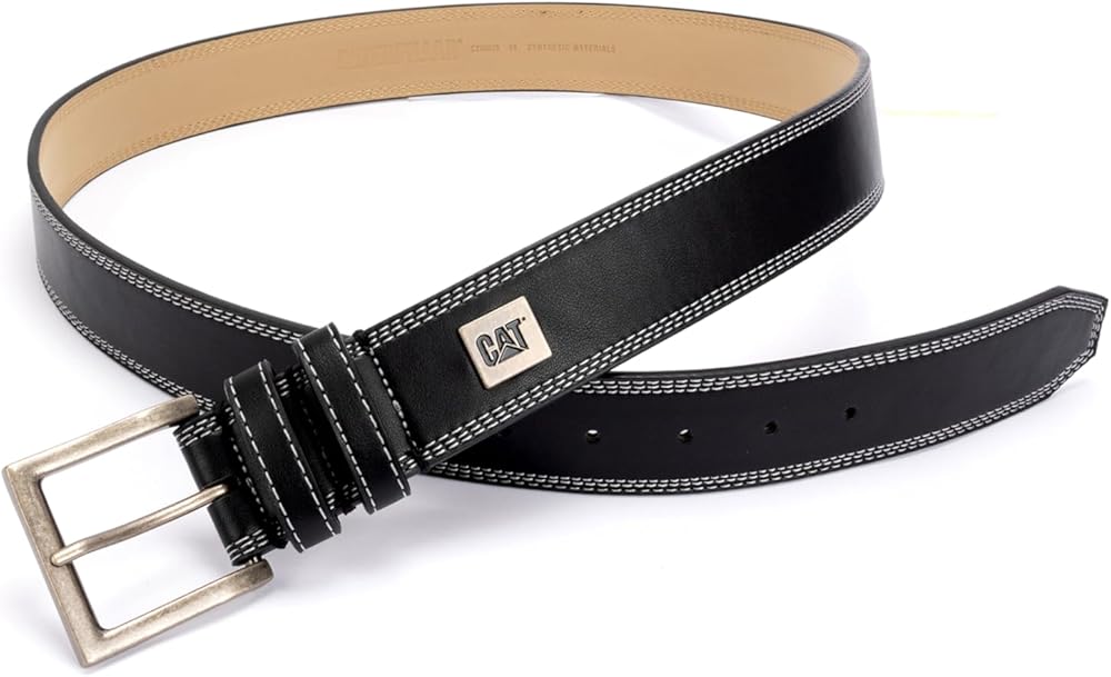 The 38mm Triple Edge Stitch Belt for men features a classic brass buckle and single loop with CAT branding. This faux leather belt is perfect for work or play. The belt can be worn to work, casual outing and all occasions. Caterpillar belts make great gifts for him, perfect for Father's Day, Christmas, Valentine's Day, Birthday's and more!