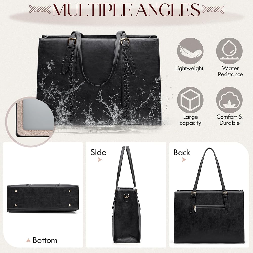 • حقيبة عمل ذات حجم مثالي: حقائب عمل للسيدات هي 16.53 × 5.9 × 11.8 بوصة (الطول × العرض × الارتفاع). الوزن الصافي: 2.05 رطل. انخفاض المقبض: 8.26-14.56 بوصة. حزام الكتف القابل للتعديل 30.31-53.14 بوصة طويلة ومناسبة لمعظم أجهزة الكمبيوتر المحمولة مقاس 13 بوصة/14 بوصة/15 بوصة/15.6 بوصة. لا تقتصر حقيبة العمل ذات الحجم المثالي على المكتب فحسب، بل تنتقل بسلاسة من العمل إلى أنشطة ما بعد العمل، مما يجعلها مناسبة للاجتماعات والعروض التقديمية، وحتى النزهات غير الرسمية، استمتع بتعدد الاستخدامات دون المساس بالأناقة والوظيفة.
