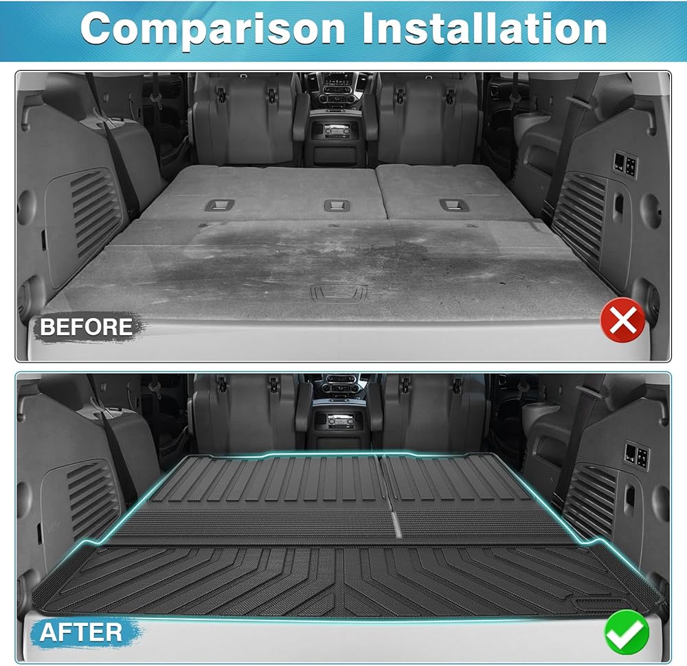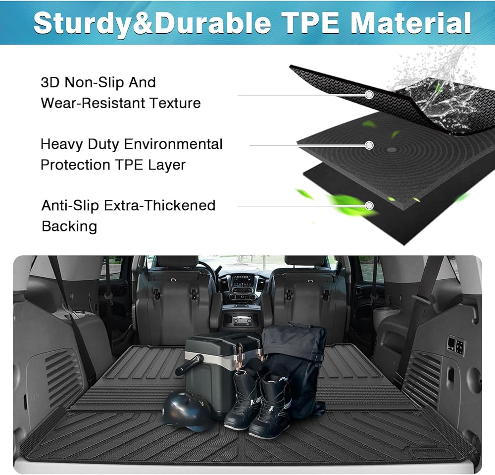 All Season Guard and Safe TPE Material: Cargo mat for Chevy Tahoe is made of premium durable TPE materials, wear-resistant, non-slip and odorless. High tensity and safe TPE material keeps its flexibility in all season while still offering an excellent feel and extreme wear resistance.