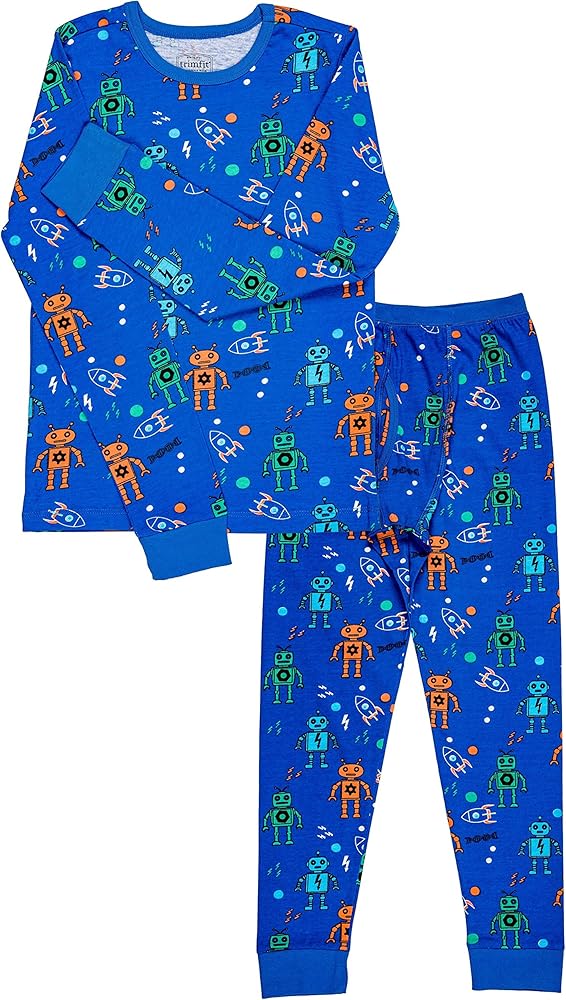 مجموعة Trimfit بيجامة من القطن العضوي الكبير مكونة من قطعتين بأكمام طويلة وطبعة روبوت