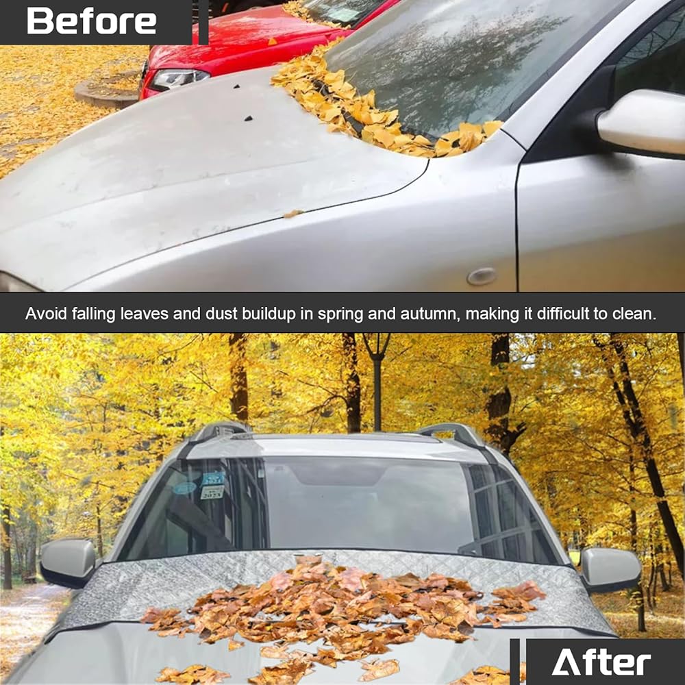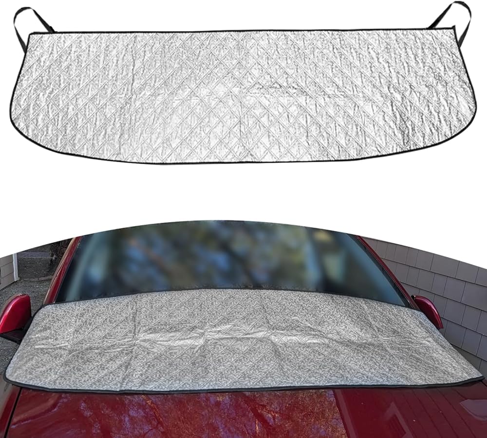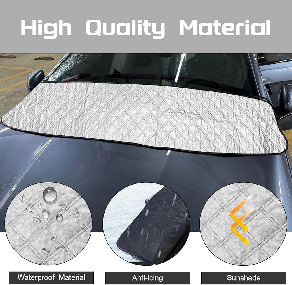 • 【High quality materials】Our windshield protective cover is made of quality materials, which has excellent pull resistance and is not easy to break. It can also prevent ultraviolet, frost, rain and dust. And the material of the windshield protective cover is wear-resistant and thicker,and can effectively prevent scratches on the windshield.