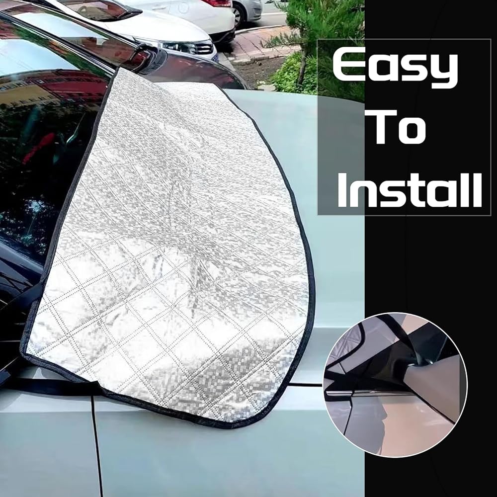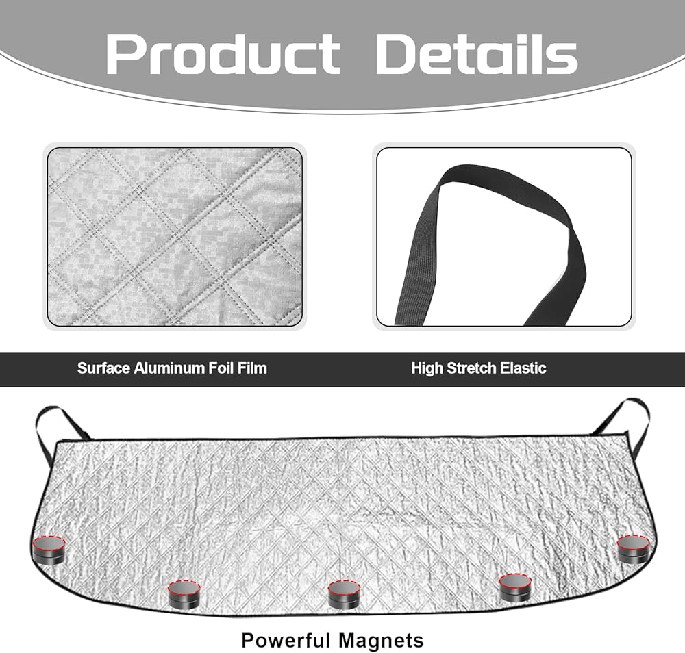 • 【Elastic Band + Adsorption】Our windshield protective cover features a windproof design with magnets for superior adsorption and stability. At the same time, the elastic bands provide theft protection, which can be hung on the rearview mirror. Making it suitable for use in strong winds.