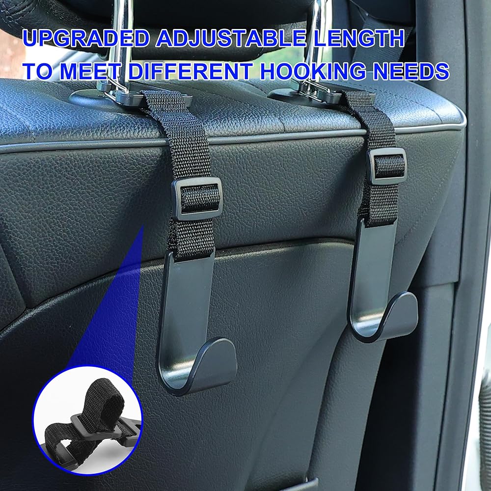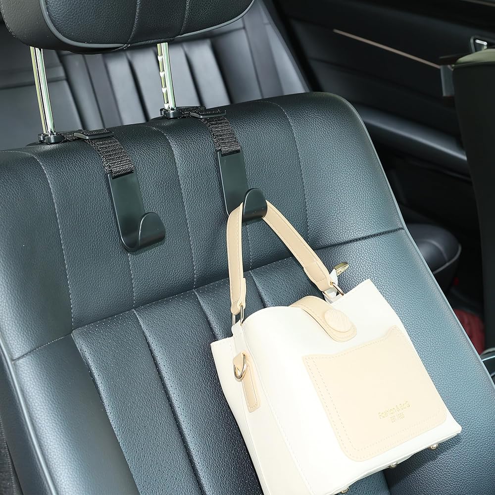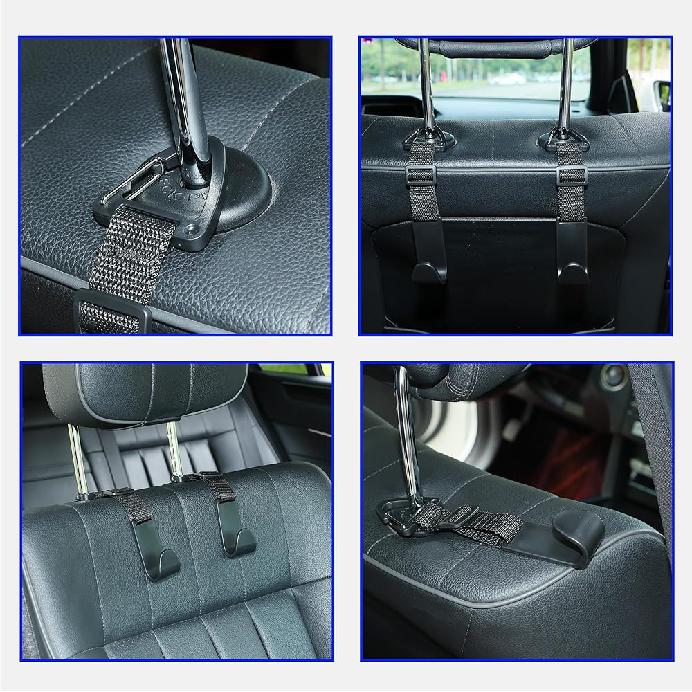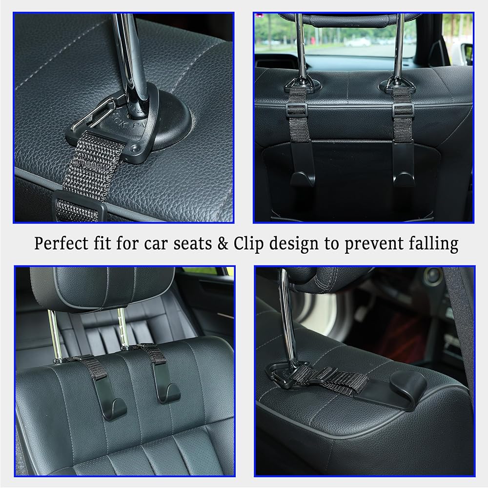 آمن وسهل الاستخدام: لن تضطر بعد الآن إلى وضع الأشياء على الأرض أو المقعد. تحافظ خطافات مسند الرأس على حقائبك/زجاجات المياه الخاصة بك بعيدًا عن السقوط أثناء رحلة القيادة، وتبقي متعلقاتك في متناول اليد.