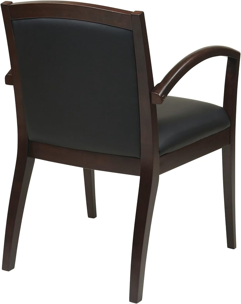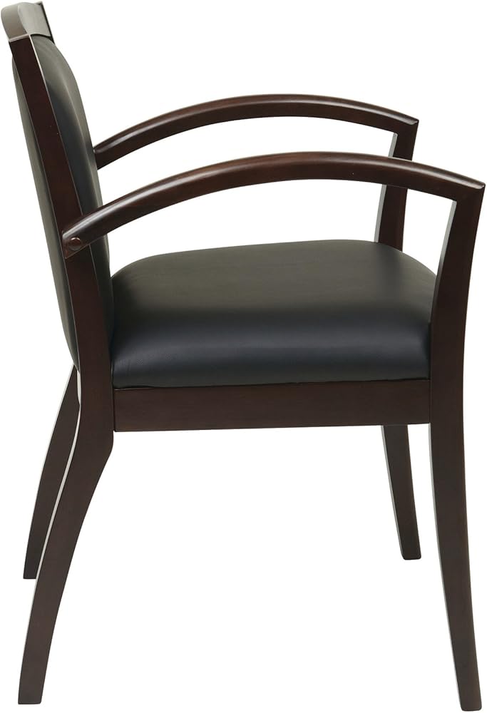 كرسي ضيوف من Office Star NAP97ESP-EC3 Napa كامل الوسادة مصنوع من الجلد الأسود ومقعد خشبي، إسبرسو