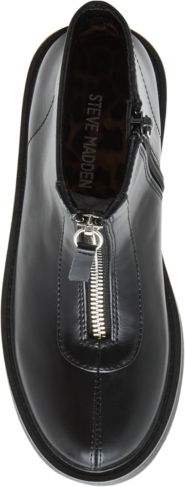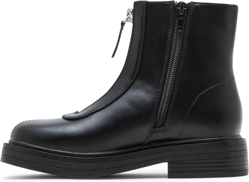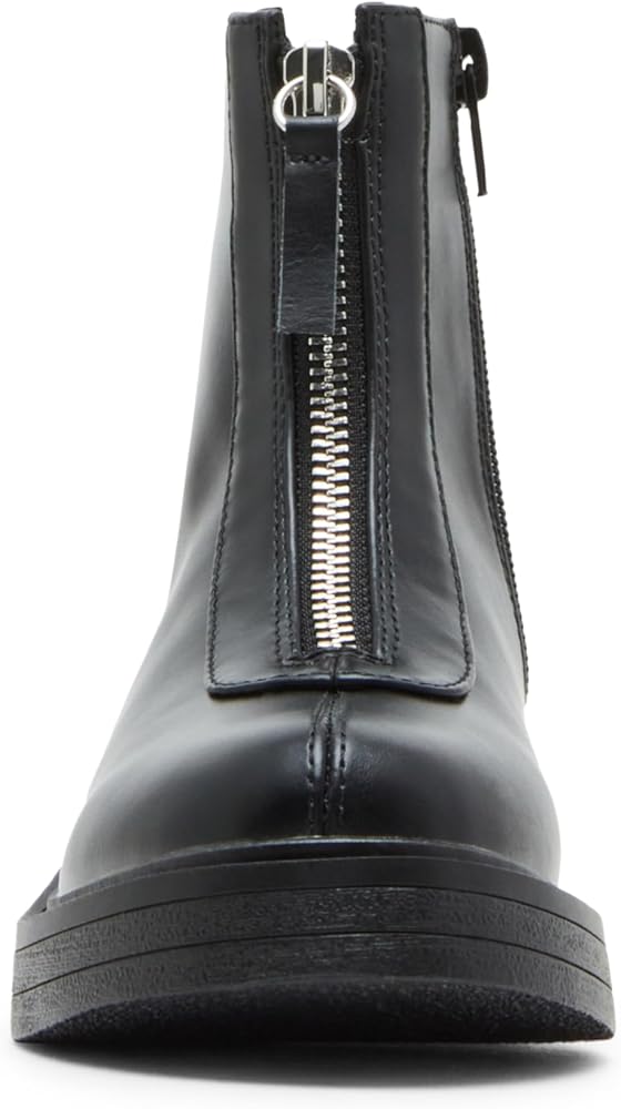 Experience style and comfort with the JONES ankle boot. The sleek black design and front zipper detail add a touch of modernity to any outfit. Made with durable leather, these ankle booties are perfect for everyday wear.