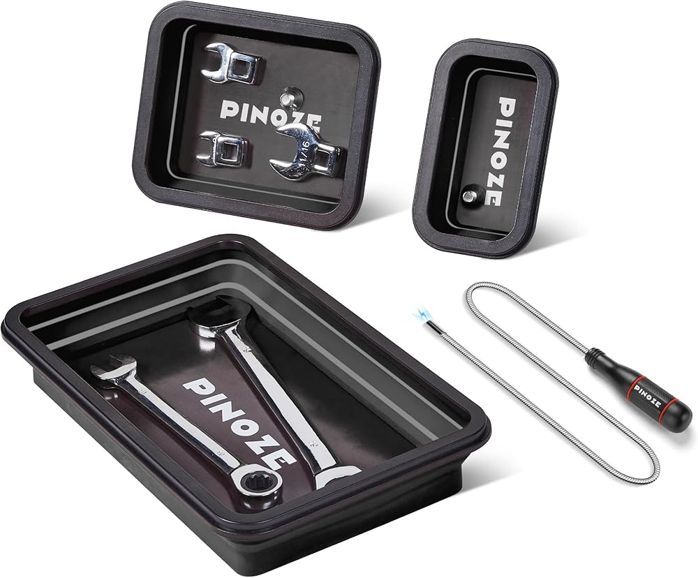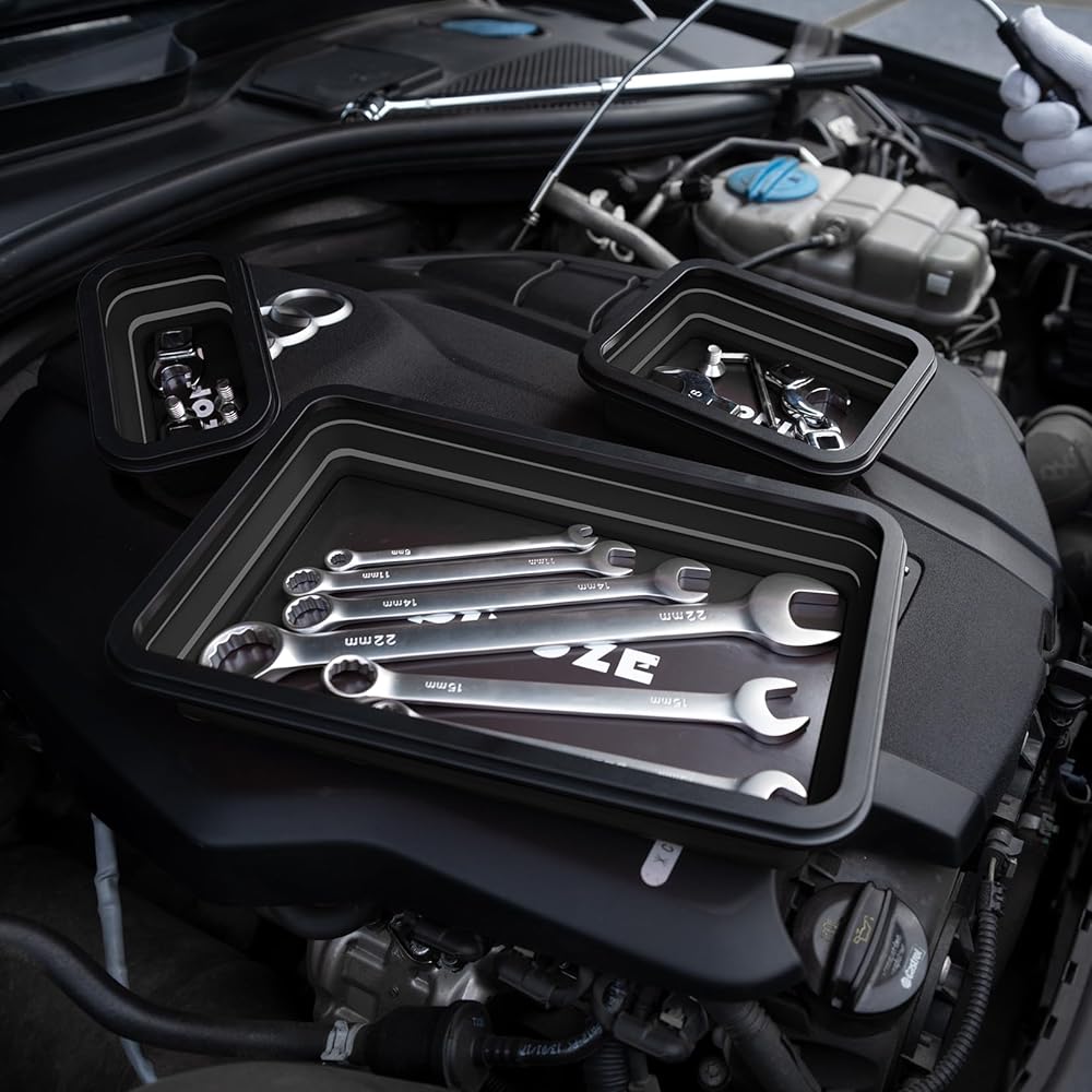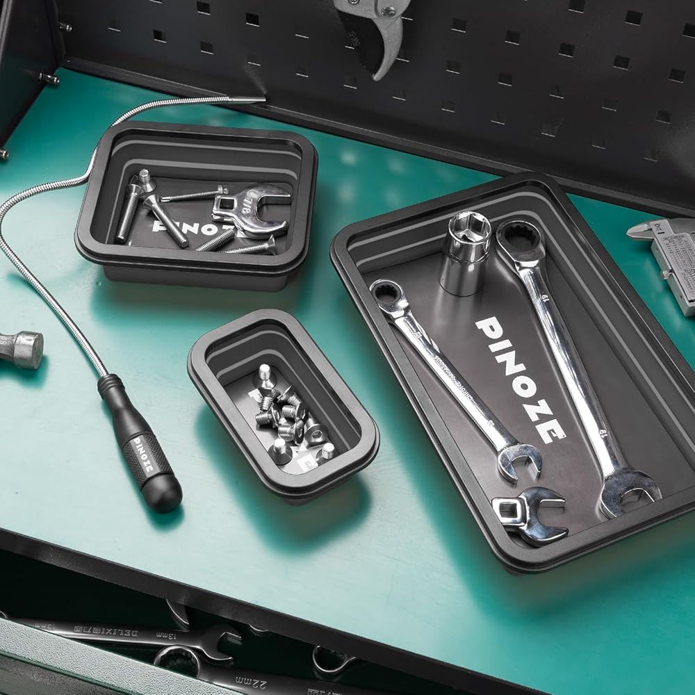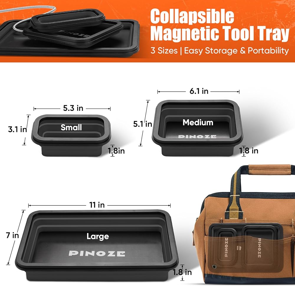 【ما تحصل عليه】- تأتي مجموعة صينية الأجزاء مع 3 عبوات من صواني الأجزاء المغناطيسية القابلة للطي وأداة التقاط مغناطيسية مرنة مقاس 12 بوصة.