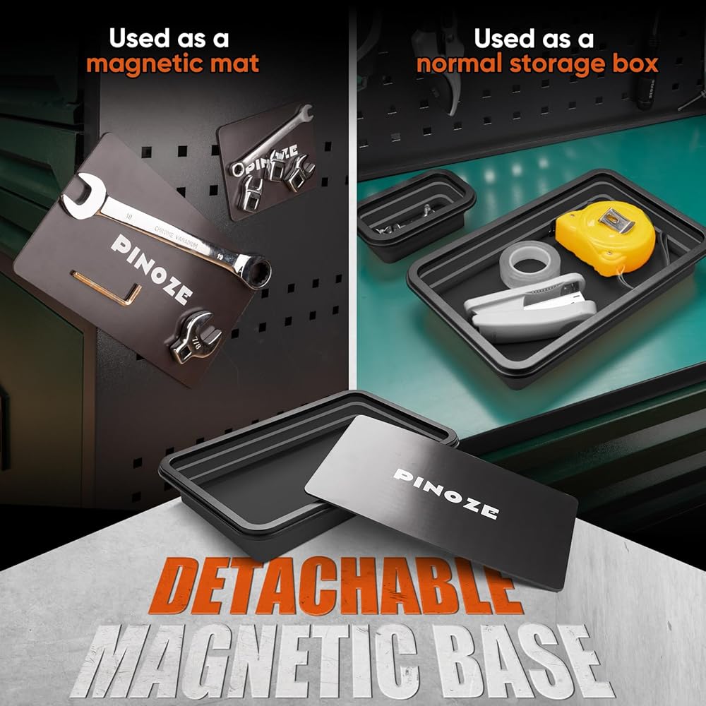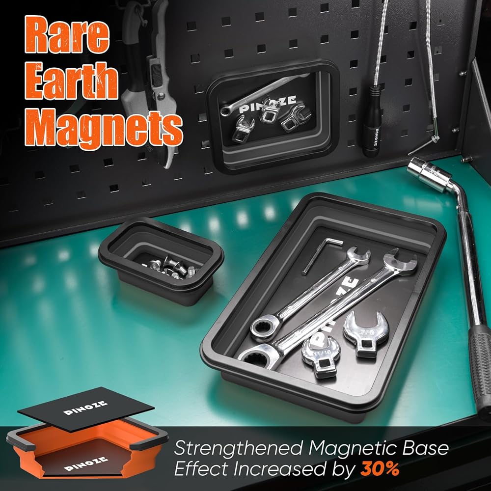 【قوة مغناطيسية قوية】 - مغناطيسات أرضية نادرة قوية في قاعدة كل صينية تحمل الصواميل والمسامير والمسامير وغيرها من العناصر المعدنية الصغيرة في مكانها دون أن تتدحرج. يمكنك وضع الصواميل والمسامير والأدوات والمقابس ومفاتيح الربط في المكان الذي تحتاج إليه، ويمكن استخدامها أيضًا كمنظم أدوات عادي.