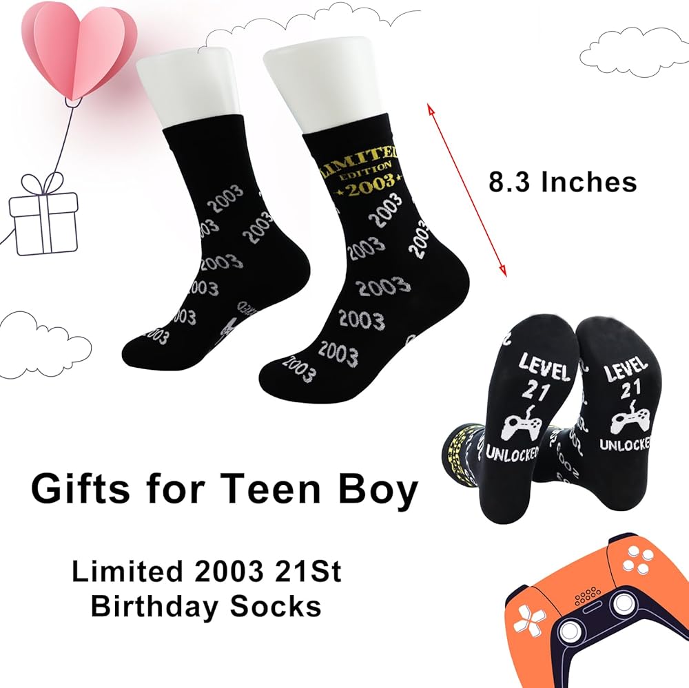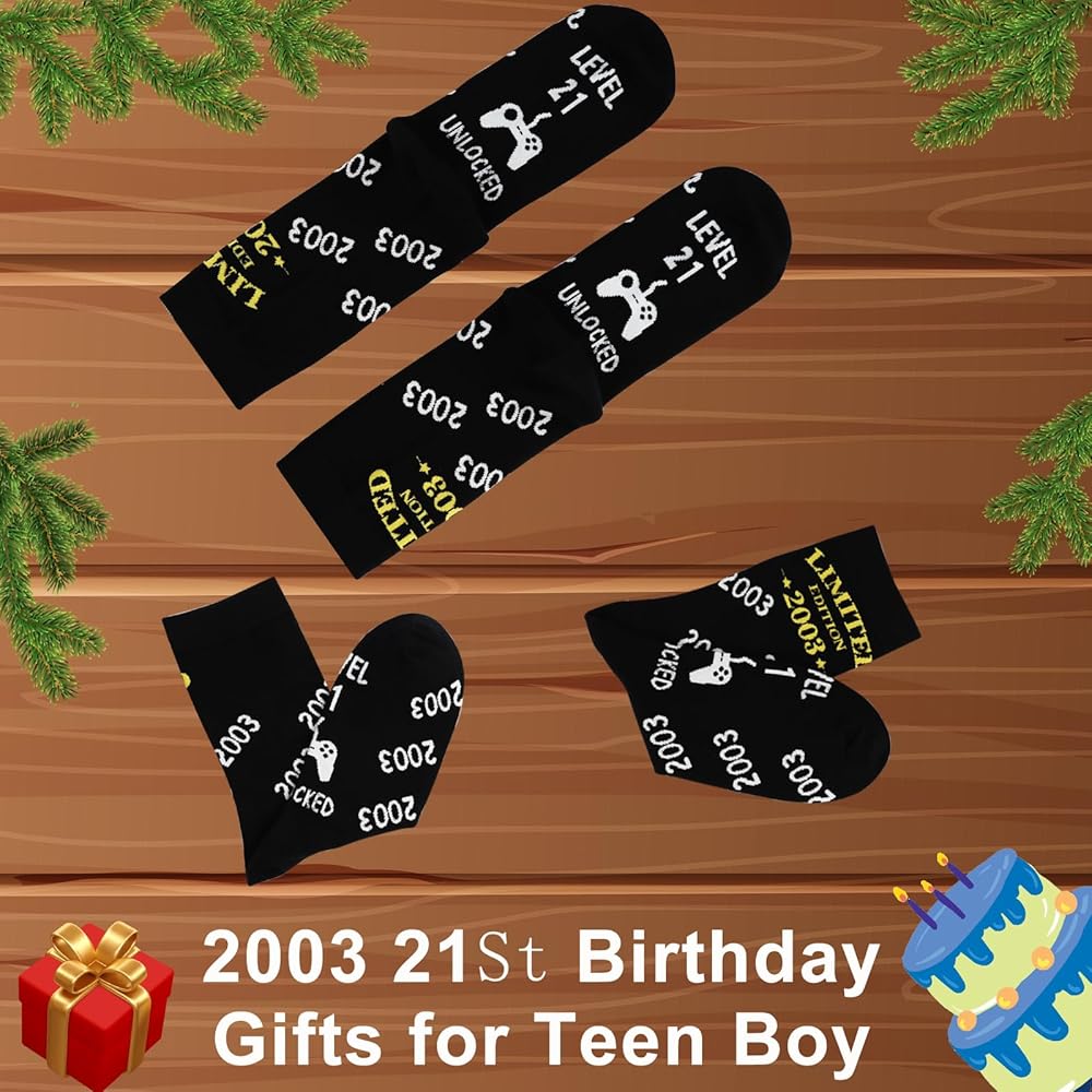 Universal Fit and Long-Lasting Print: These socks are designed to fit US sizes 6-12, making them versatile gifts for 21st birthday male or female. With "LEVEL 21 UNLOCKED"" words imperviously imprinted, these socks assure to retain their charm for a long period, making them perfect young men gifts and 21 year old birthday gifts for him.