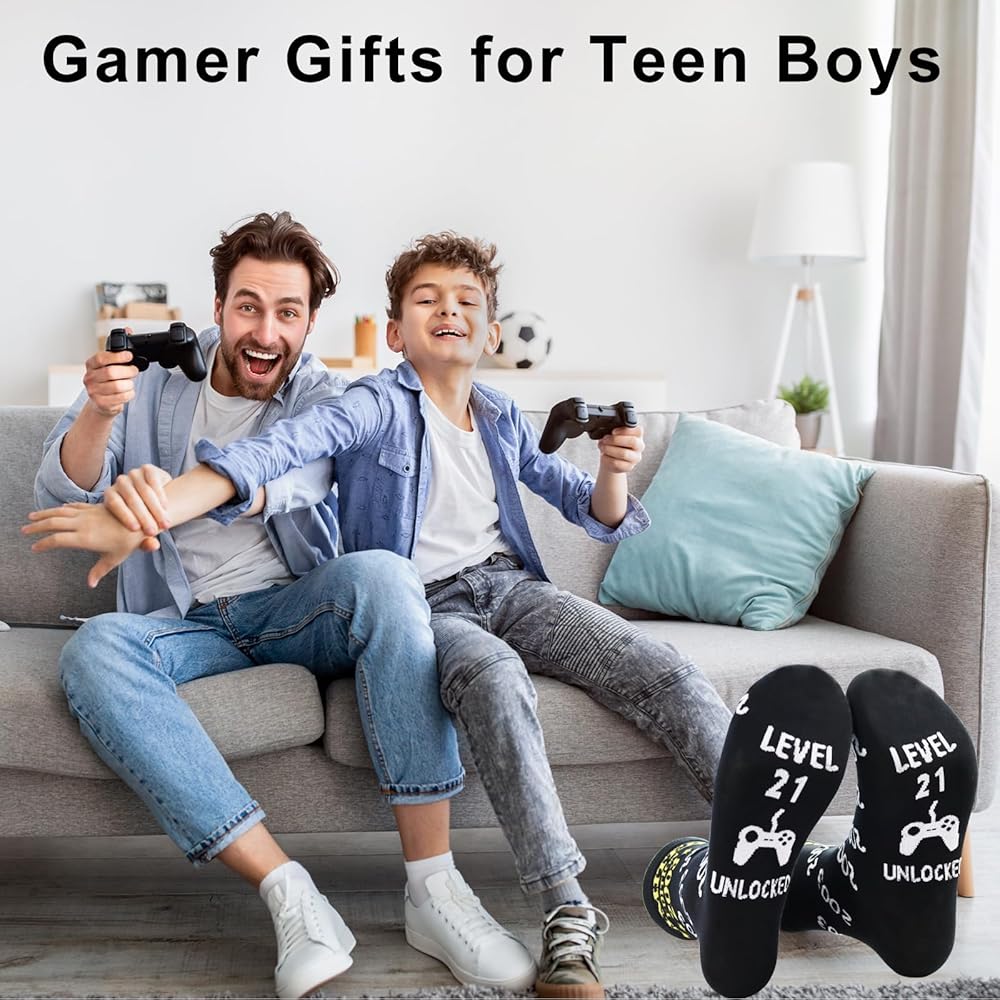 • 【Unique 21st Birthday Gifts】: Whether you're on the hunt for 21st birthday gifts for him or her, or exploring cool 21st birthday gifts, this pair of 'gamer socks' makes a perfect choice. Ideal for both casual and hardcore gamers, these socks combine unique design with fun stitching to make one-of-a-kind gaming gifts for men or women.