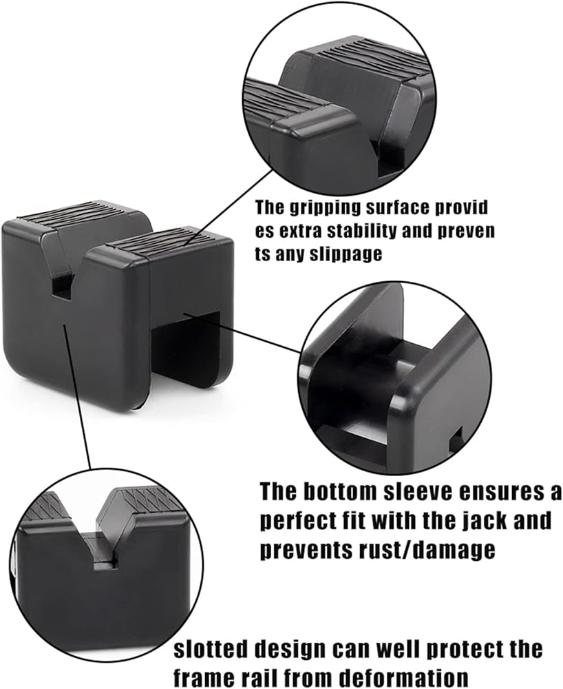 ضروري لحماية سيارتك: تم تصميم محول وسادة جاك MUGE RACING ليكون قويًا بما يكفي لدعم سيارتك. سيمنع قضبان الإطار واللحامات من الانحناء عند استخدام جاك لرفع سيارتك، ويمكنه أيضًا حماية المعلقات المطلية أو المطلية. عناصر