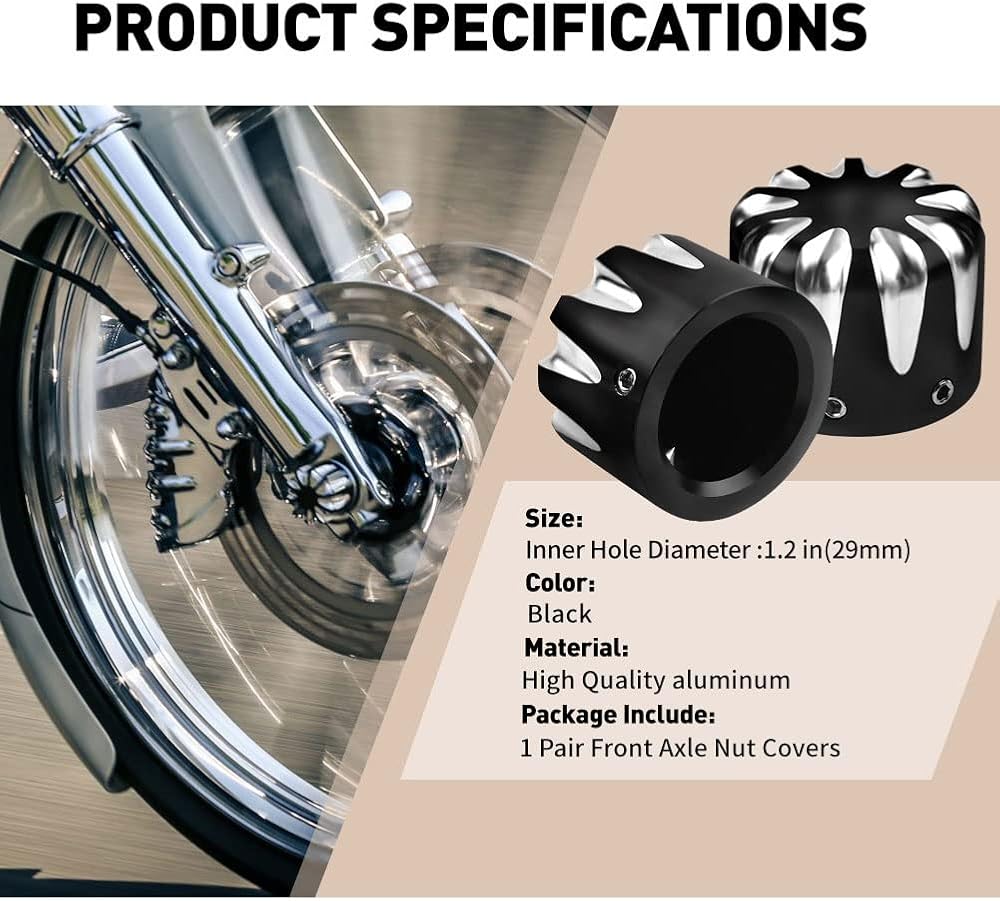 - تتضمن العبوة: زوج واحد من أغطية صواميل المحور الأمامي؛ 1 مفتاح ربط سداسي