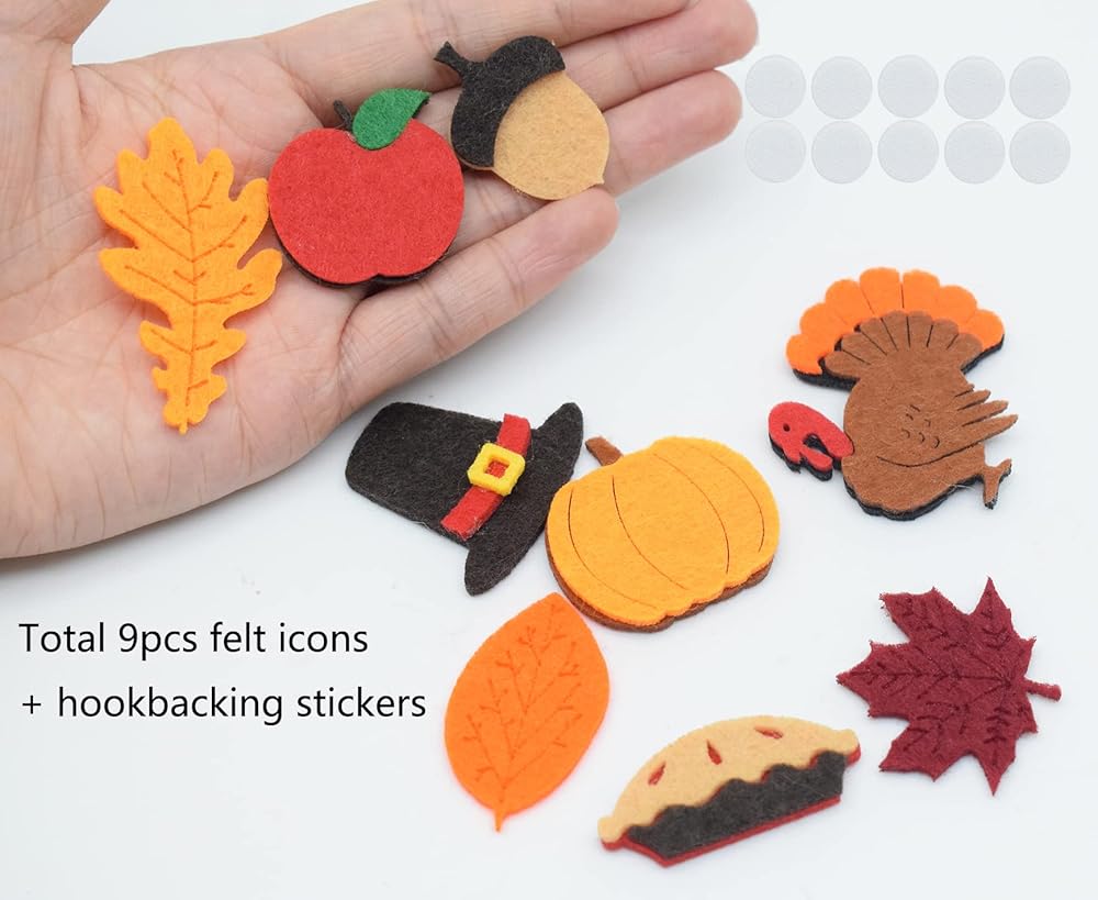 【بالنسبة للوحة اللباد】 تأتي أيقونات عيد الشكر اللباد مع ملصقات داعمة بخطاف، فقط من أجل لوحة اللباد.