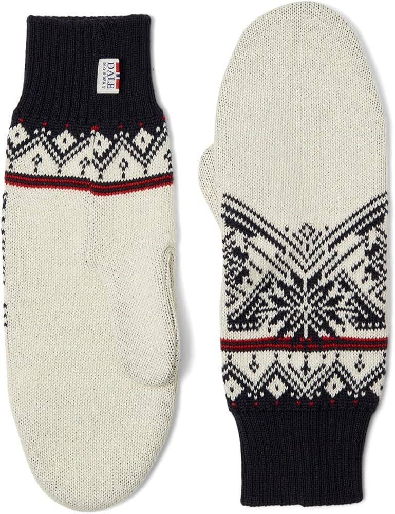 Embrace cold-weather days while keeping your hands warm and dry in the Dale of Norway Moritz Mitten. Skinsoft Merino Wool knit: Shorn from Merino sheep, this fine yarn is spun from long-staple fibers with tightly overlapping scales for smooth, next-to-skin softness. Pull-on style. Water repellant technology. Bold knit pattern. Ribbed cuffs. Branding label on cuff. 100% merino wool. Machine wash, dry flat. Made in Norway.