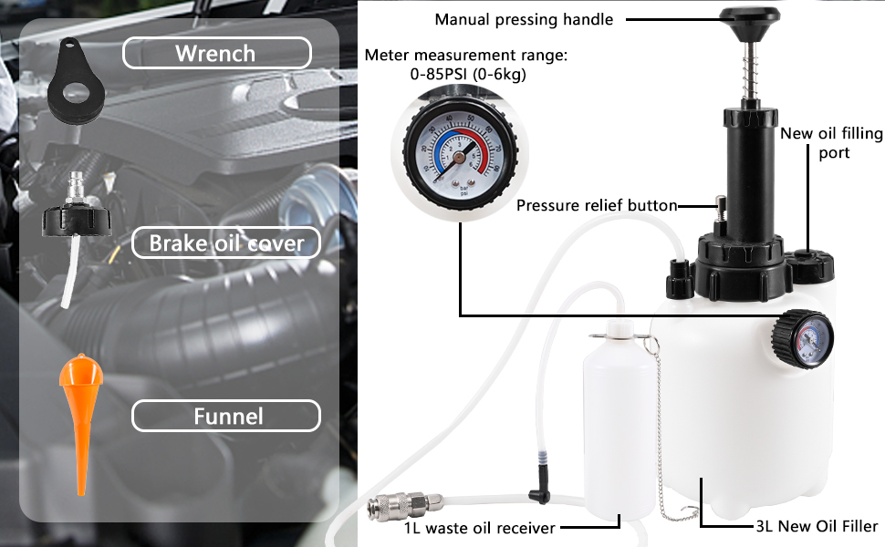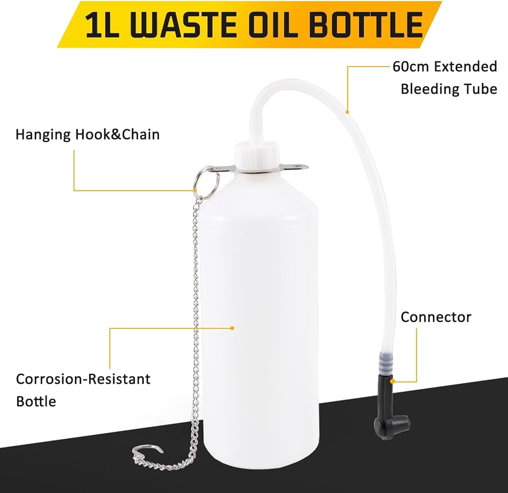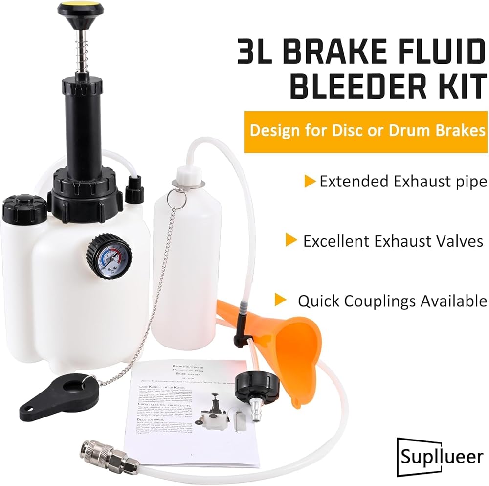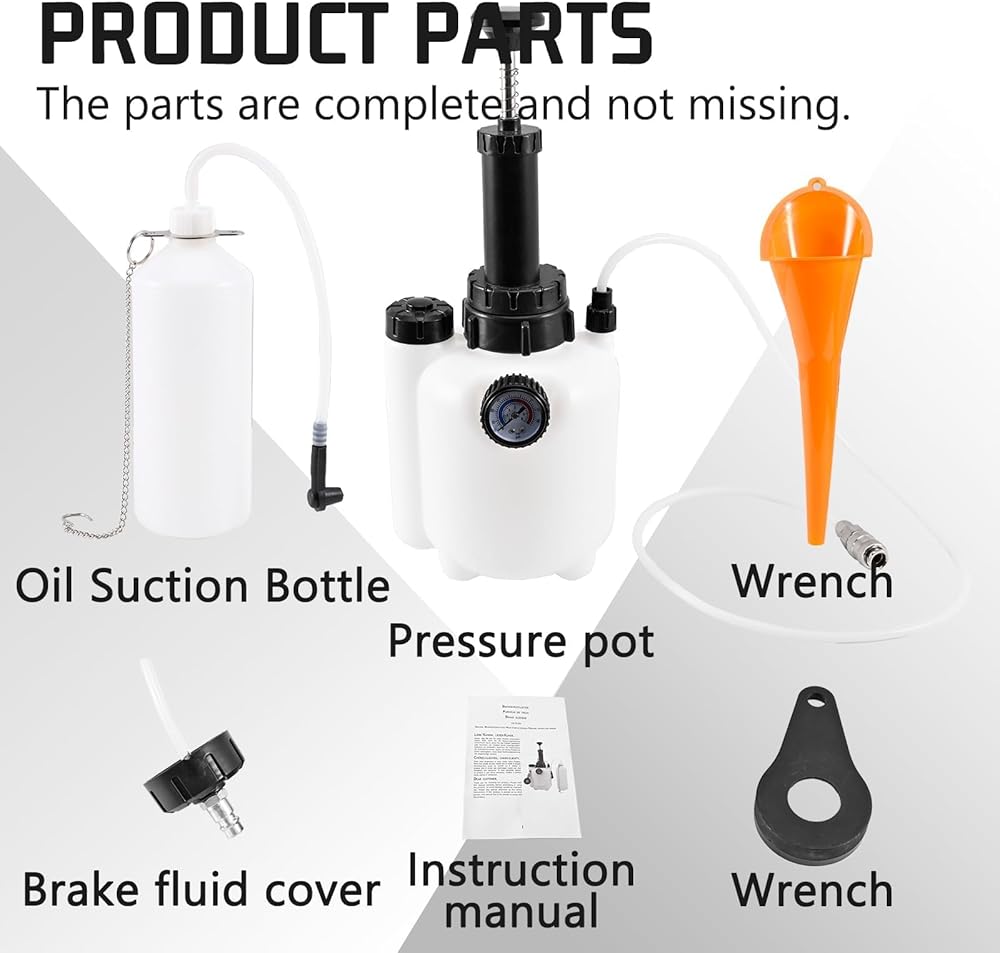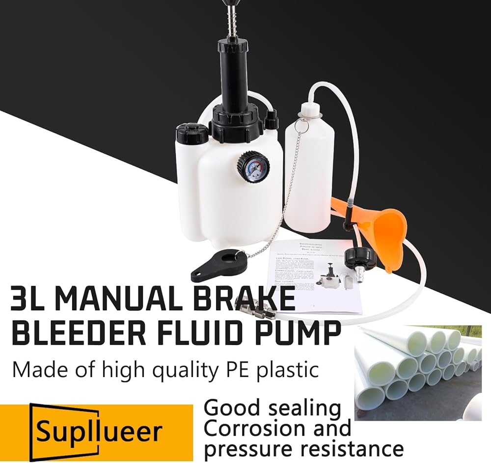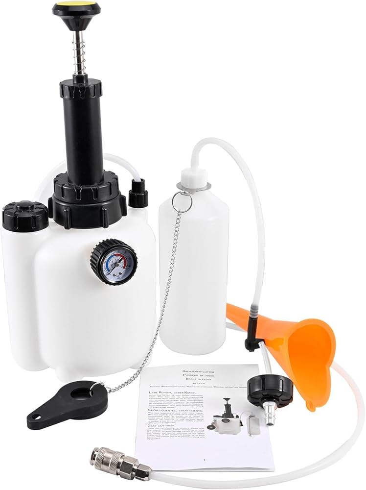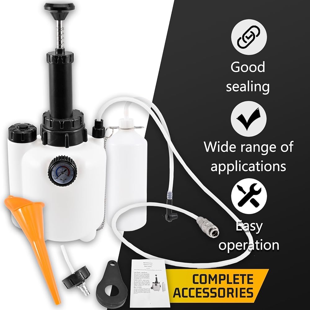 【سعة كبيرة】يمكن لمجموعة نزيف الفرامل أن تحمل 3 لتر وتحتوي على خرطوم شفاف بطول 60 سم، ومجموعة نزيف الفرامل لرجل واحد مناسبة لمعظم خزانات أسطوانة الفرامل الرئيسية، ويمكن تشغيلها بسهولة بواسطة شخص واحد دون الحاجة إلى أيدي إضافية. أو القدمين.