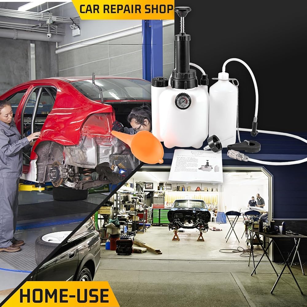 【سهلة التشغيل】يمكن لمضخة نقل السوائل أن تنزف بالمكنسة الكهربائية، وتتدفق، وتصريف وتجميع سائل الفرامل الهيدروليكي ABS وسائل القابض القياسي دون التسبب في أي انسكاب.