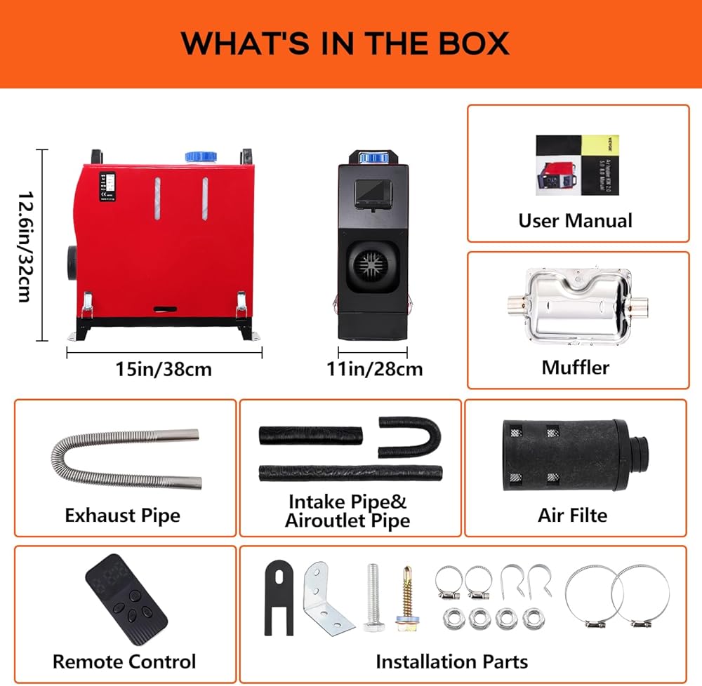 【Easy installation & Widely Used】It can be flexibly mounted on the bottom of cabin, trunk or container; and diesel heater is small and portable, widely used in semi-truck, caravan, boat, RV, Trucks, etc