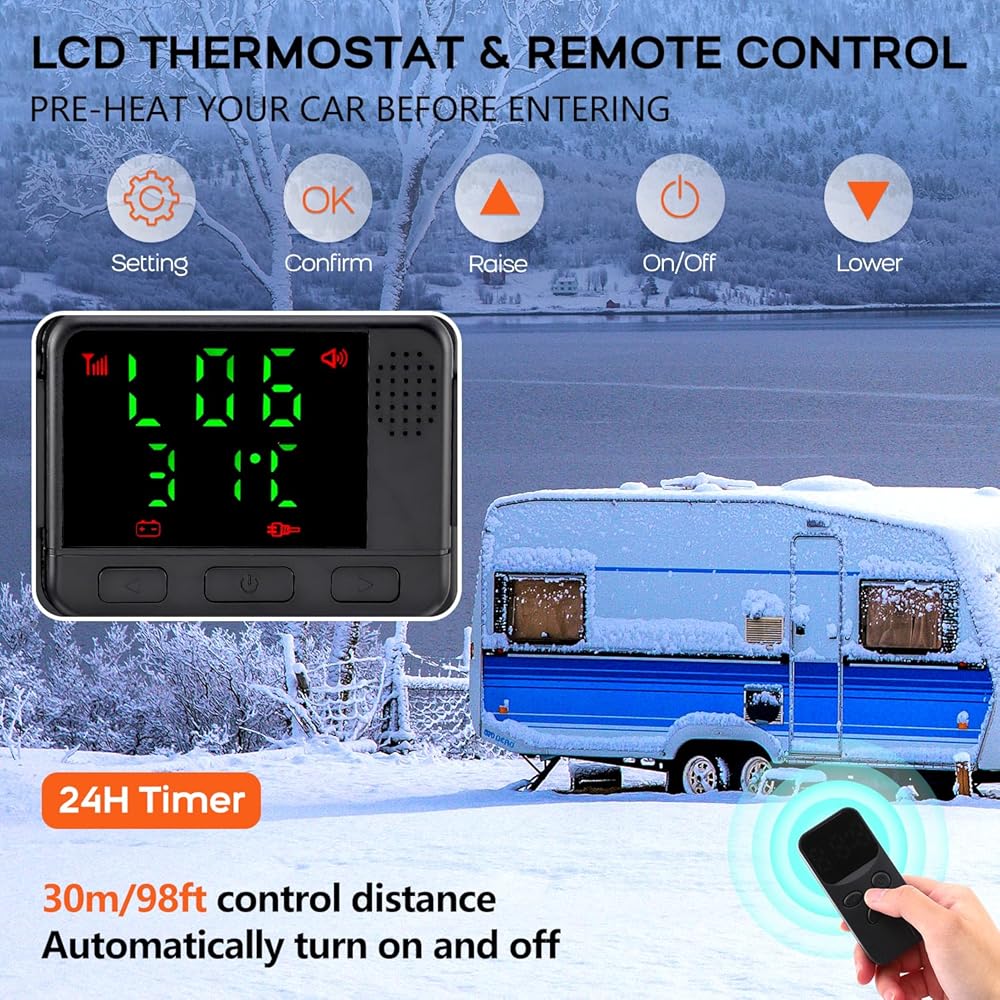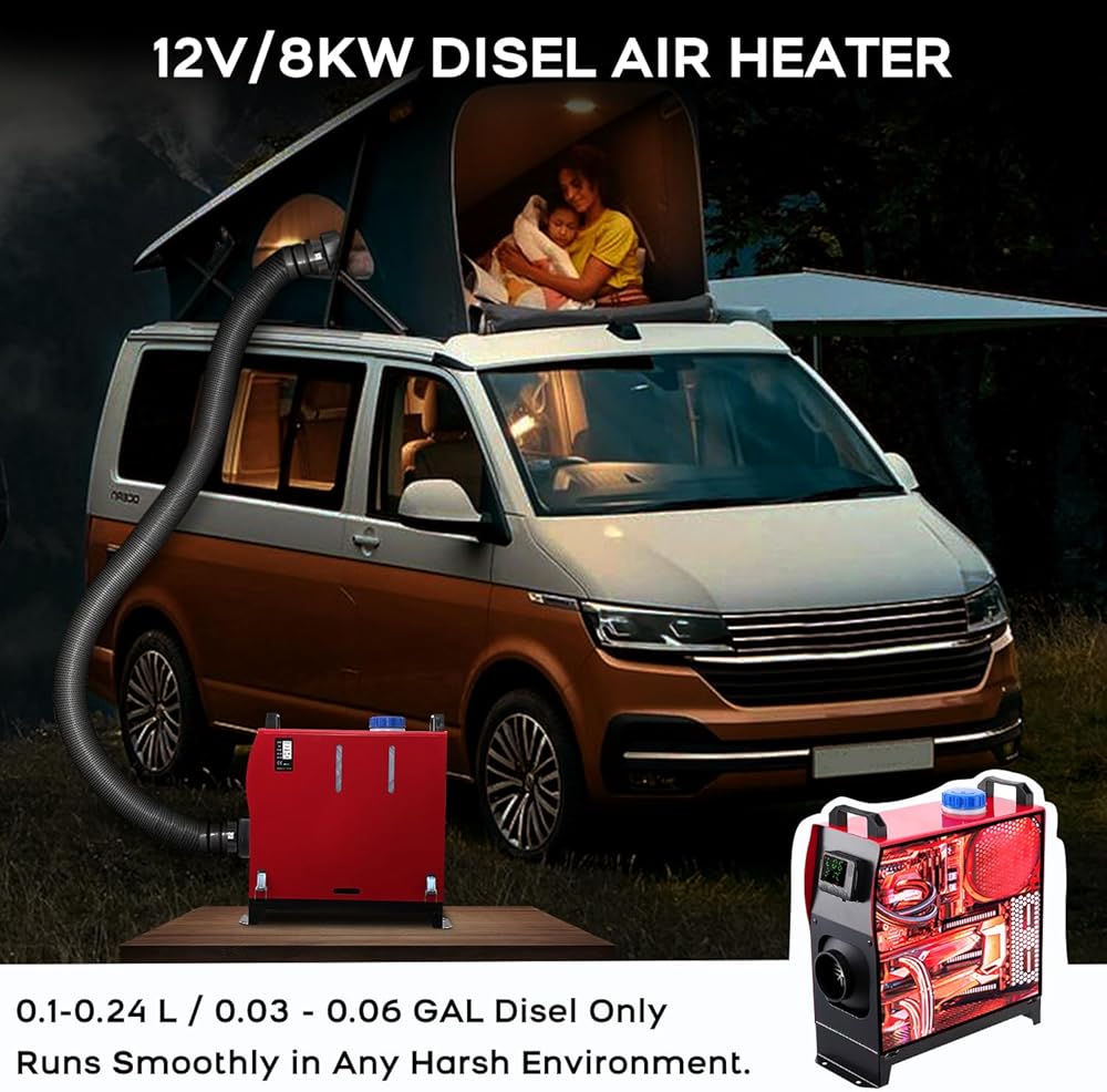【Low Energy Consumption & High Output】Save on fuel costs with diesel heater's precision low-noise fuel pump, consuming less than 1 gallon per night and reducing fuel consumption.