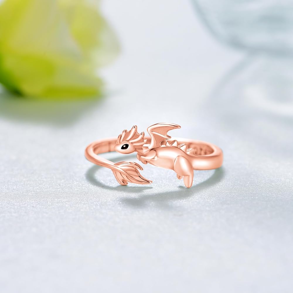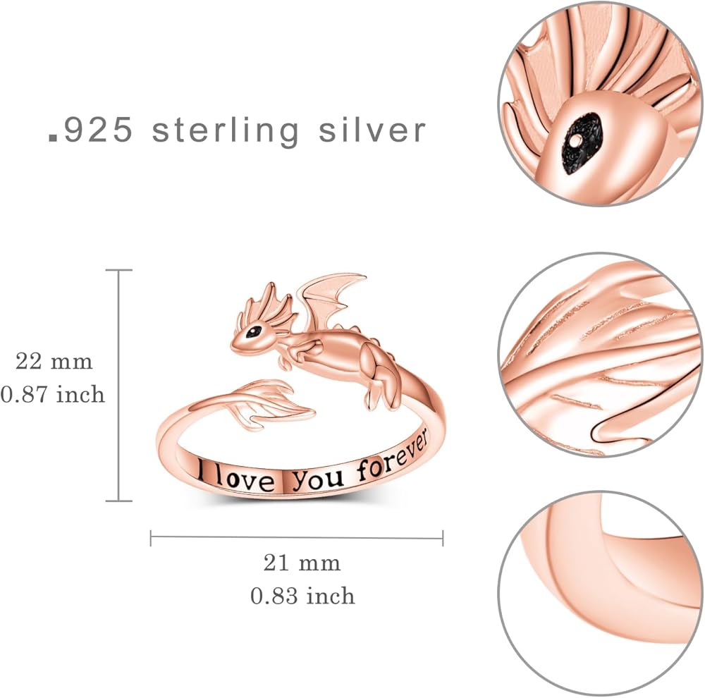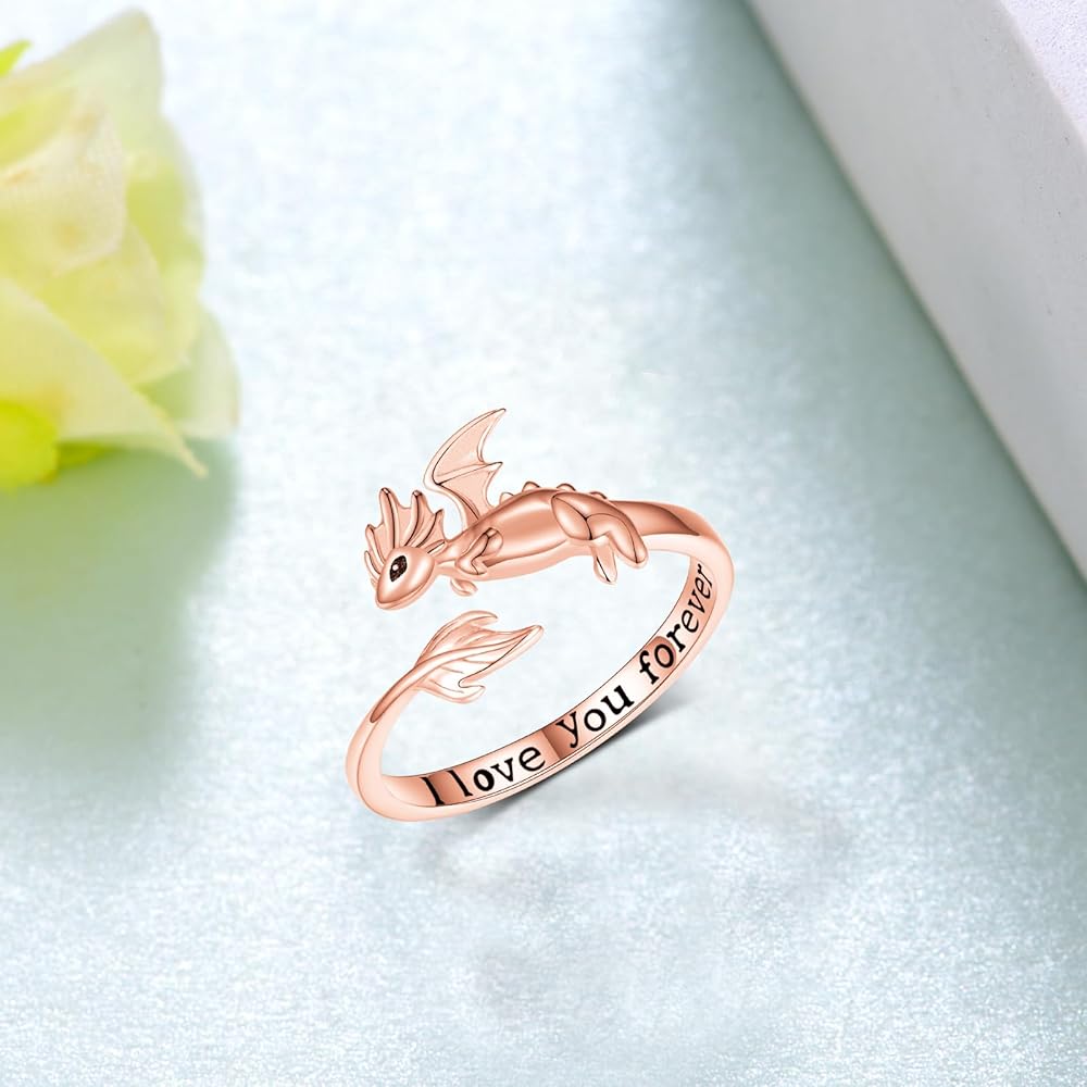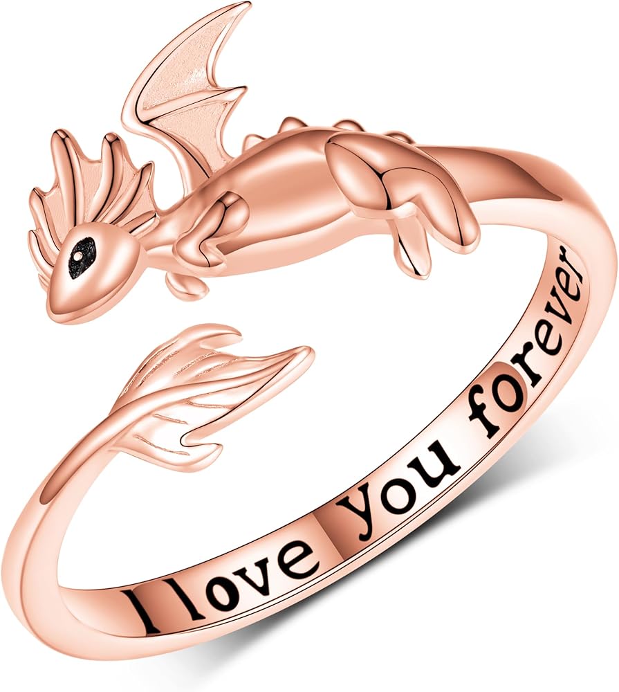 خاتم التنين اللطيف: هذا الخاتم مستوحى من تنين صغير لطيف، والذي يرمز إلى القوة والحظ السعيد والحماية. الجزء الداخلي من الخاتم محفور عليه عبارة "I Love You Forever" للتعبير عن الحب الأبدي.