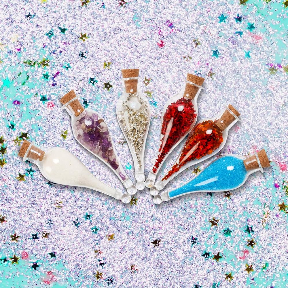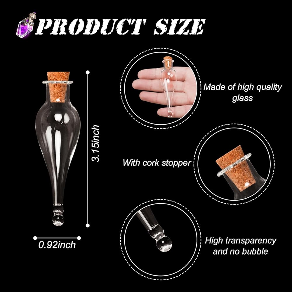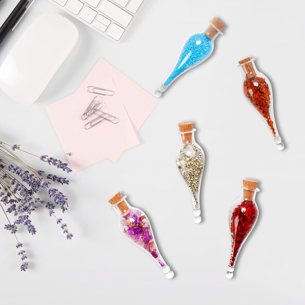 شكل الزجاجة المصغرة جميل جدًا وجميل على شكل دمعة مدببة، تأتي بشكل رائع، لطيف ومبهج، سعة كافية لملءها ببتلات الزهور والرمل الملون والترتر والخرز.