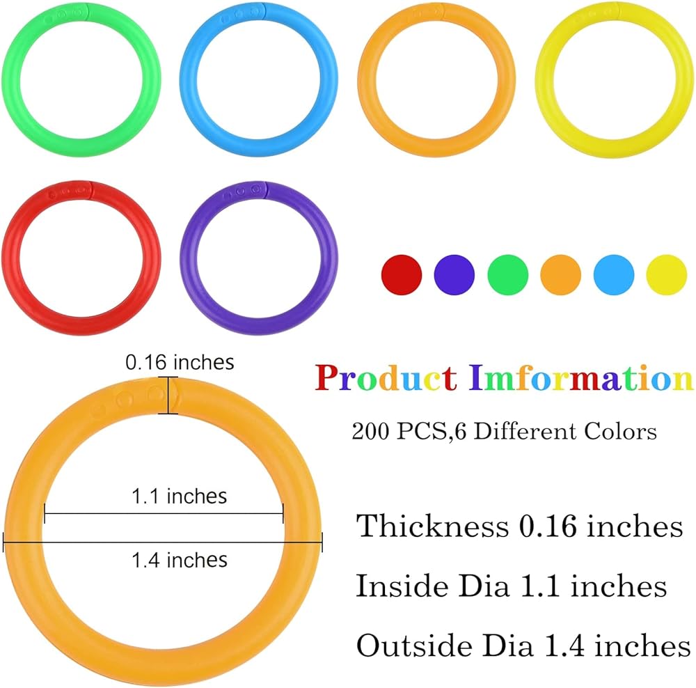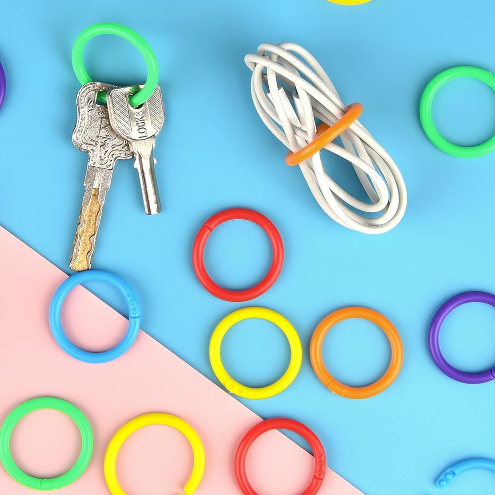 Box Packed Plastic Loose Leaf Rings Multi-color Binder Rings Office Book Rings, 27mm Flexible Book Rings for Scrapbook Cards Notebooks Keychains Document Stack School Home Office (200 Pieces/6 Colors)