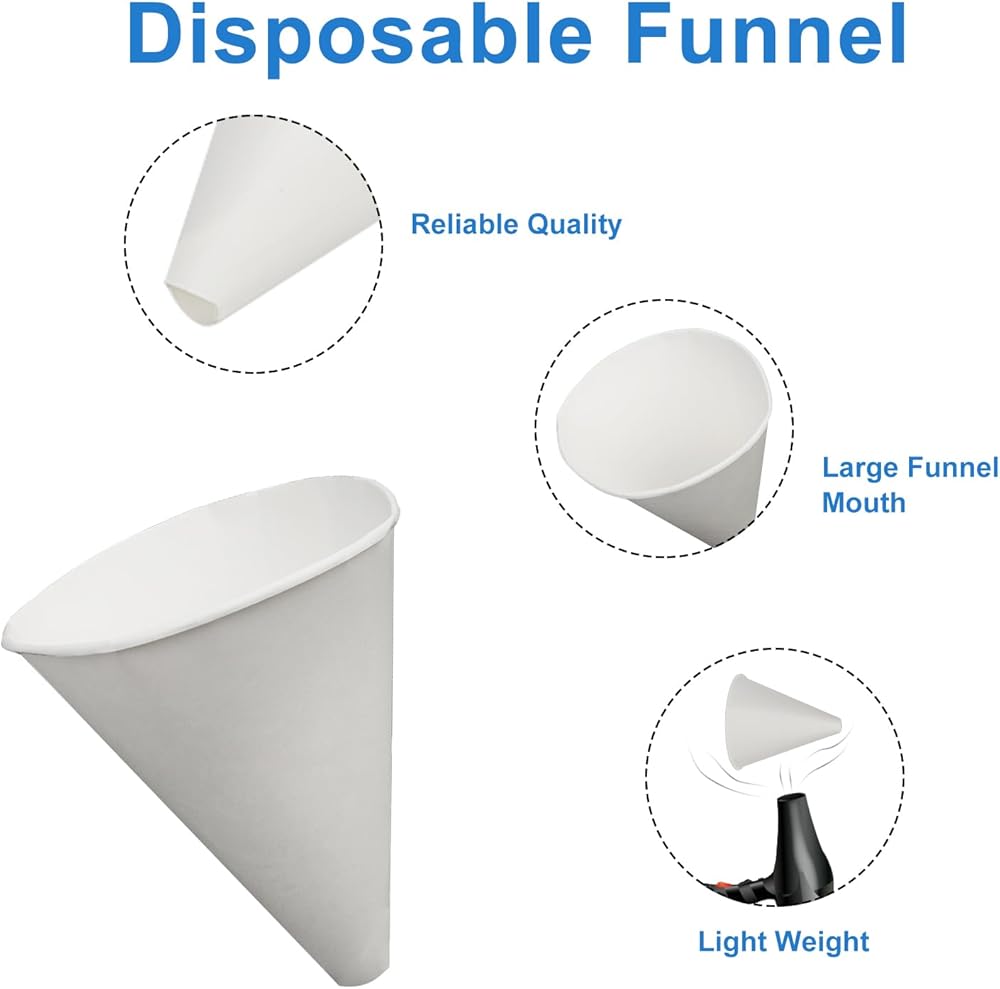 Product Materials: These motor oil funnels are made of paper, good in quality and reliable, not easy to tear. The funnel mouth is large and lightweight, making it easy for you to use at any time.