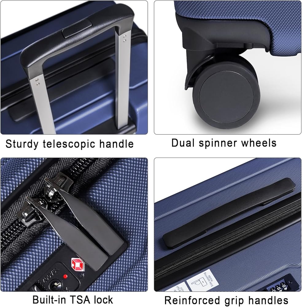 متانة فائقة ومقاومة للخدش: تم تصنيع مجموعات الأمتعة الخاصة بنا من مواد ABS الجديدة السميكة للغاية، مما يوفر متانة فائقة للهيكل الصلب. لا يضمن هذا المزيج أنها أخف وزنًا وأكثر مقاومة للصدمات فحسب، بل يوفر أيضًا سطحًا مزخرفًا يقاوم الخدوش بشكل فعال، مما يحافظ على مظهر أمتعتك نظيفًا حتى بعد الرحلات الطويلة.