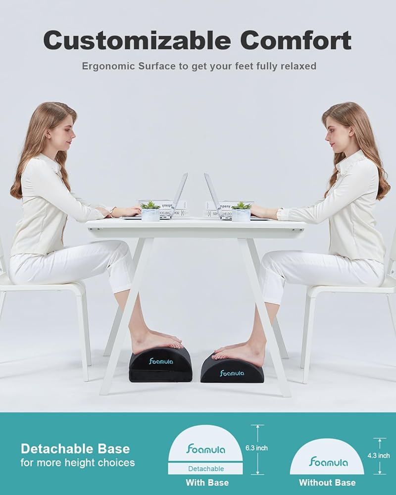 تصميم مريح مدروس: يتميز مسند قدم فومولا الموجود أسفل المكتب بسطح منحني يتوافق تمامًا مع محيط قدمك، مما يسمح لقدميك بالاسترخاء الكامل عليه. مع خيارين مختلفين للارتفاع (4.3 بوصة، 6.3 بوصة)، يمكن للأشخاص ذوي الأطوال المختلفة وأطوال الأرجل الاستمتاع بمسند القدم بشكل مثالي، خاصة الأفراد الأقصر