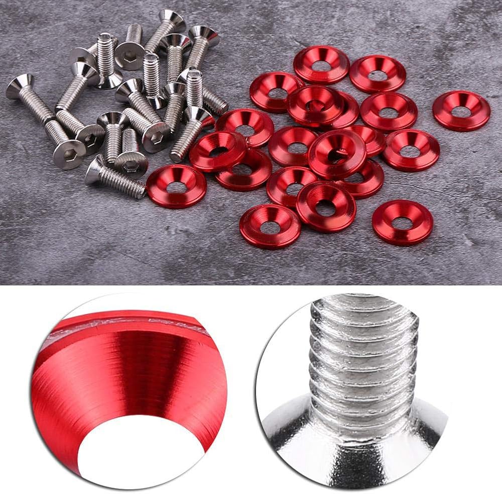 ❥❥❥ Widely Application: 20pcs brand new bumper washer bolt kit, universal fit for most vehicles. Compared to traditional bolts, this colored washer and bolt enhances the appearance of your vehicles engine bay and exterior.